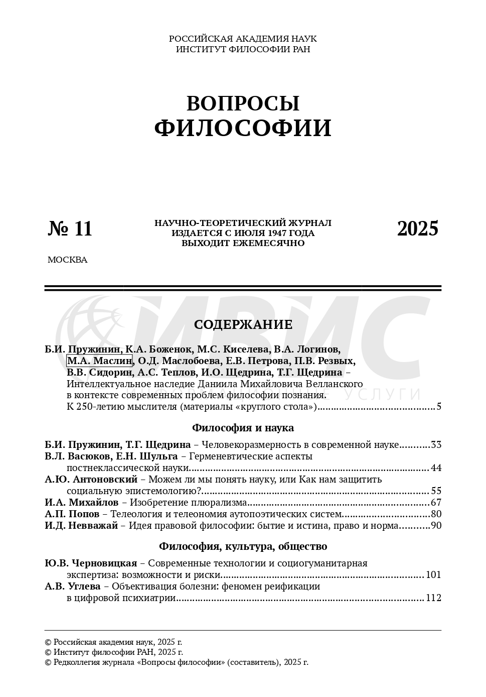 Вопросы философии 2025 №11 | Вопросы философии 2025 №11 | 2025 | 11 |