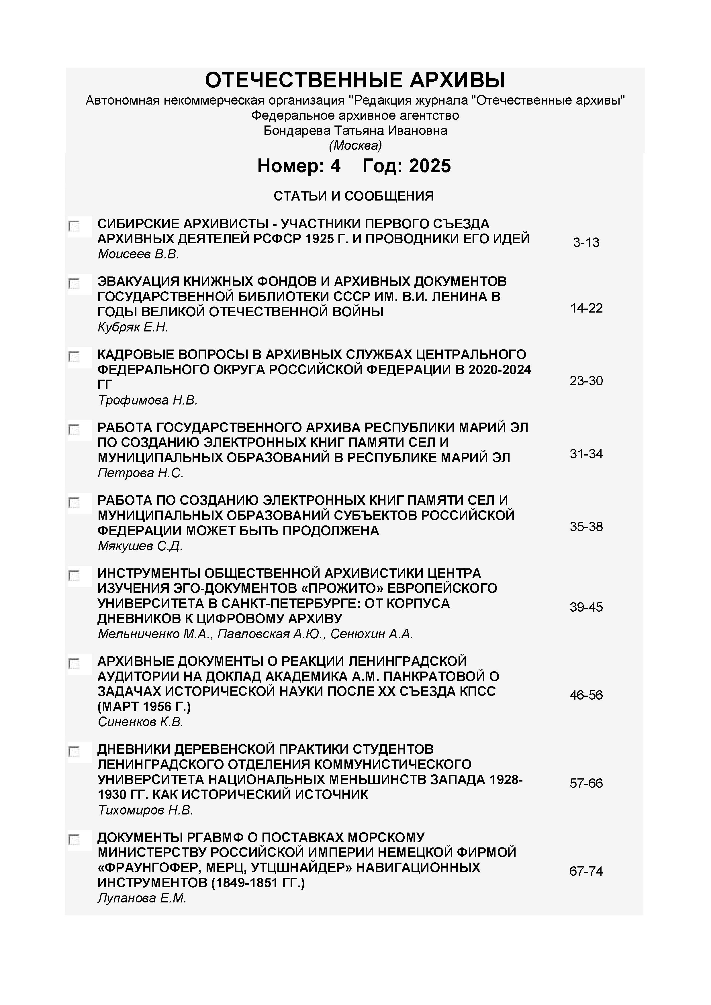 Отечественные архивы 2025 № 4 |