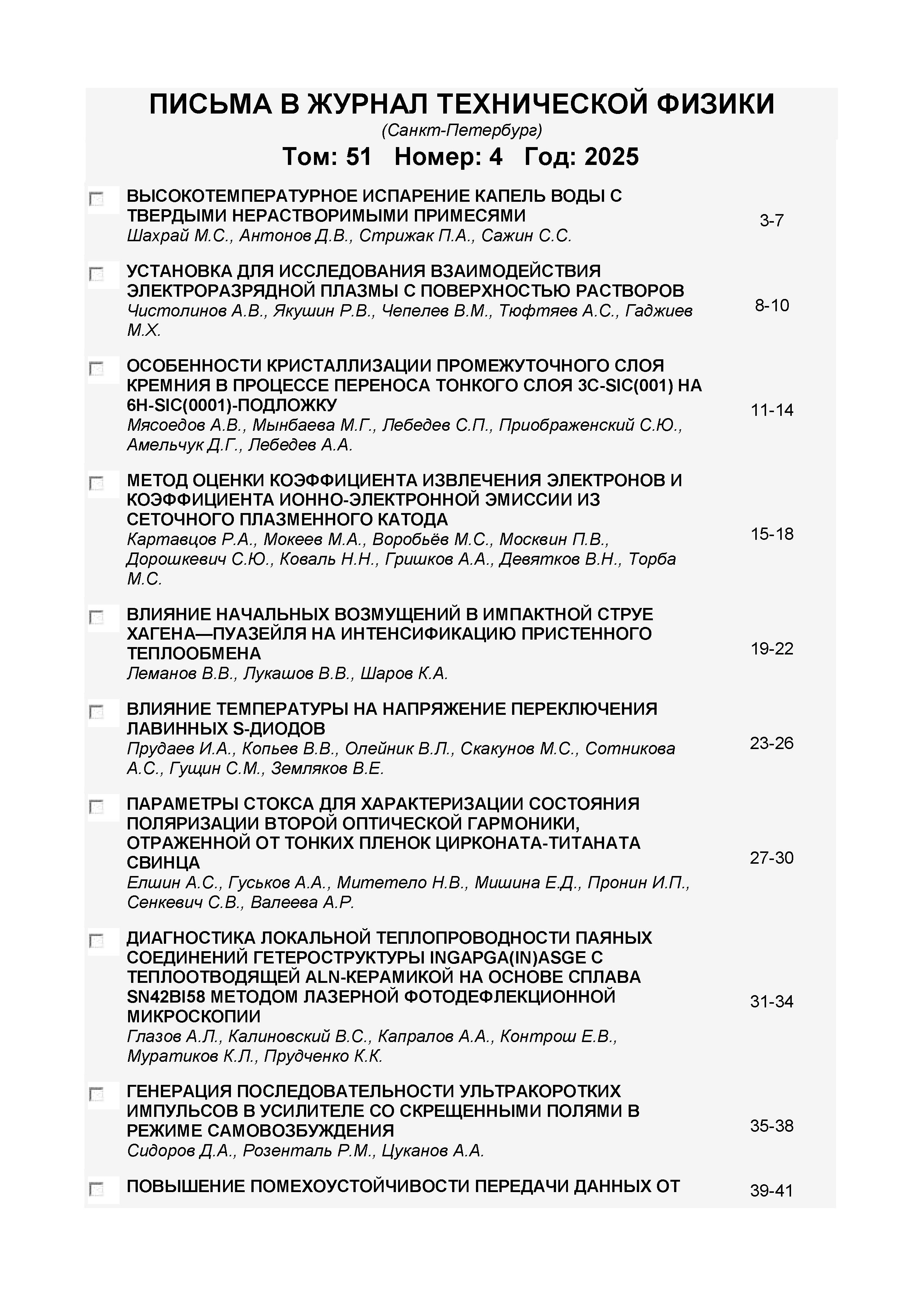 Письма в журнал технической физики 2025 T.51 № 4 |