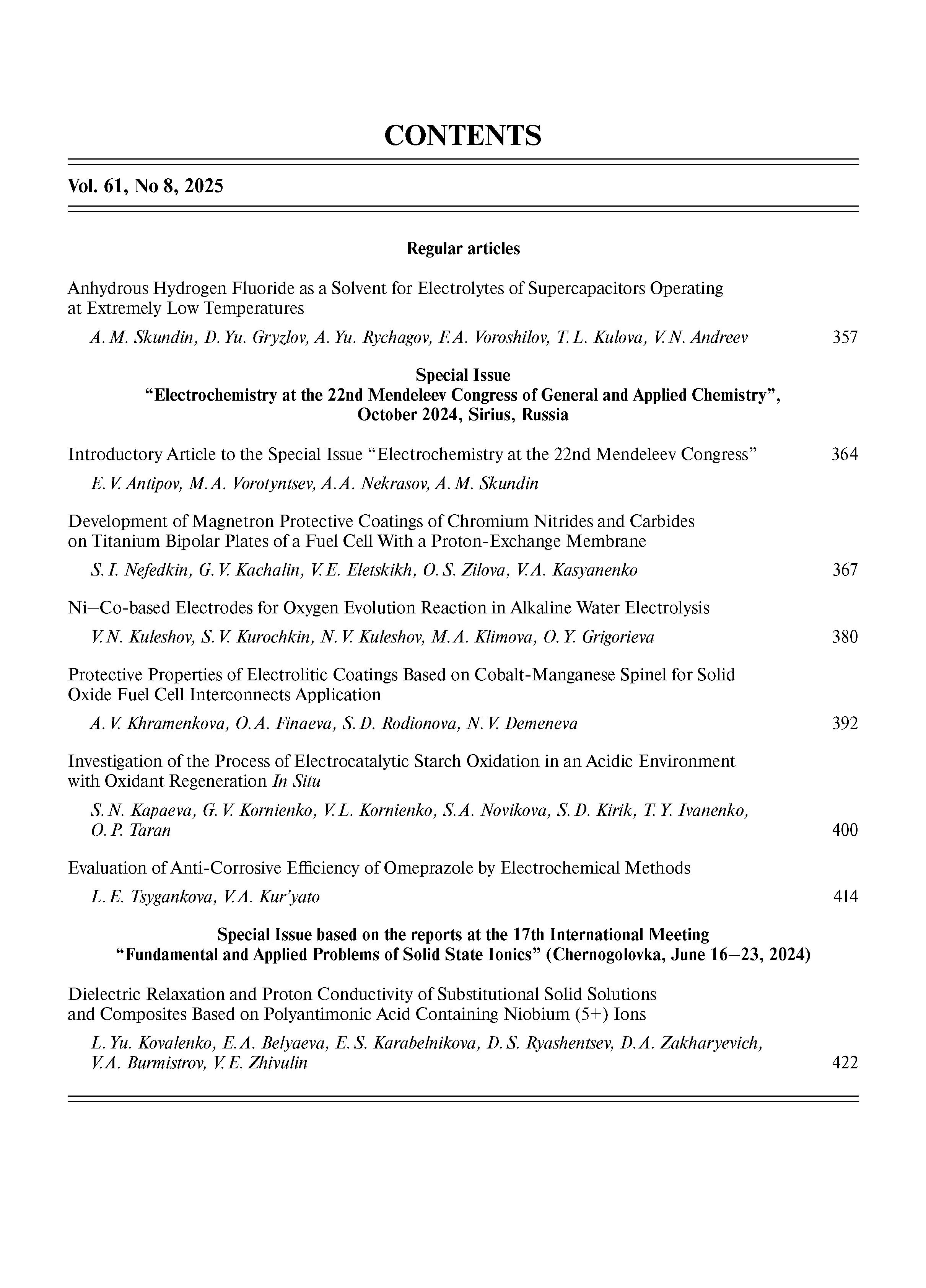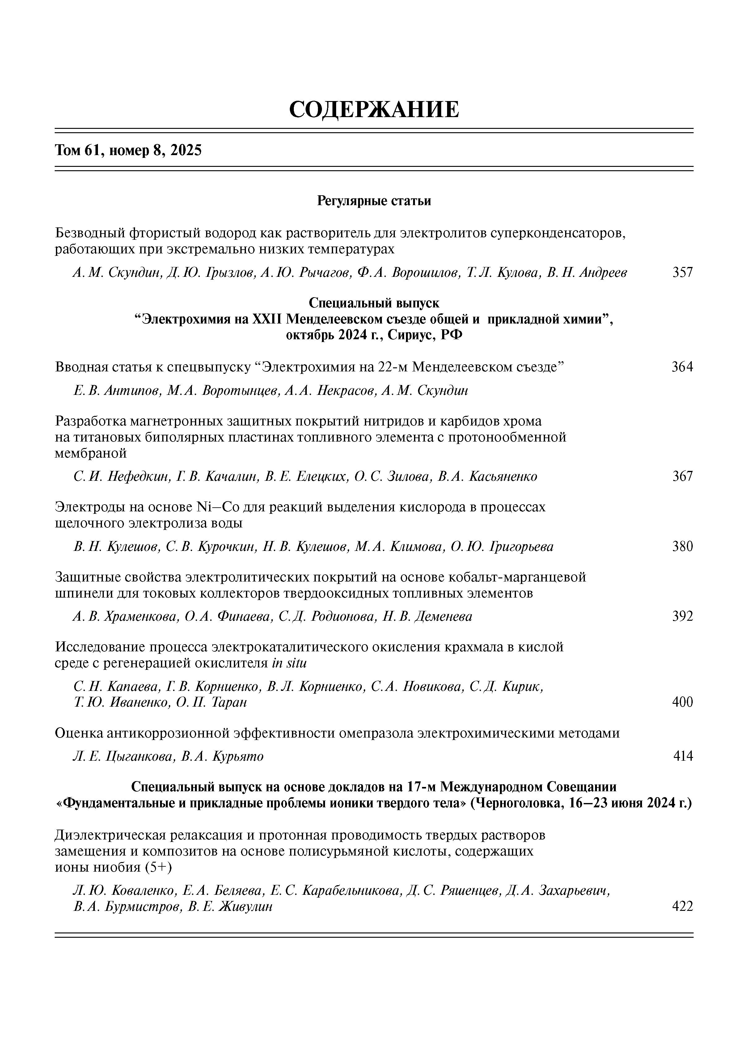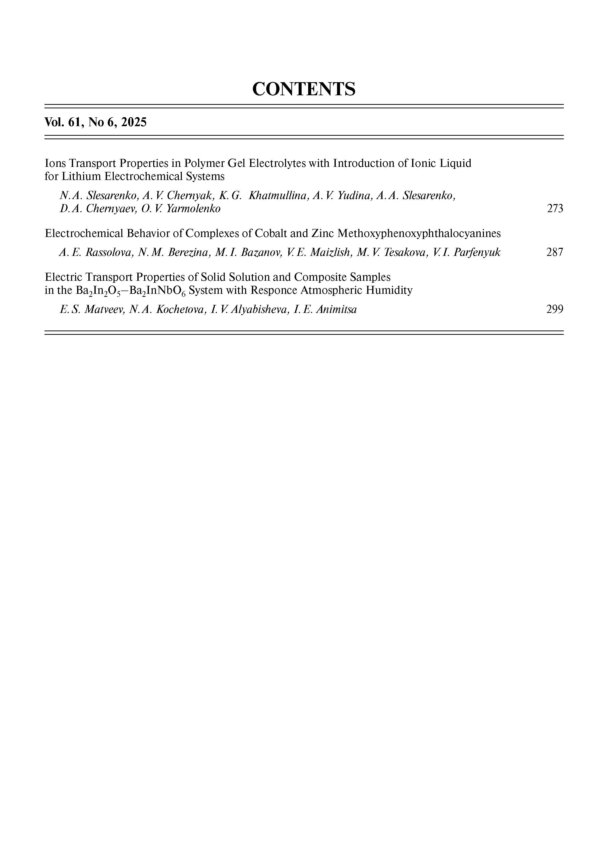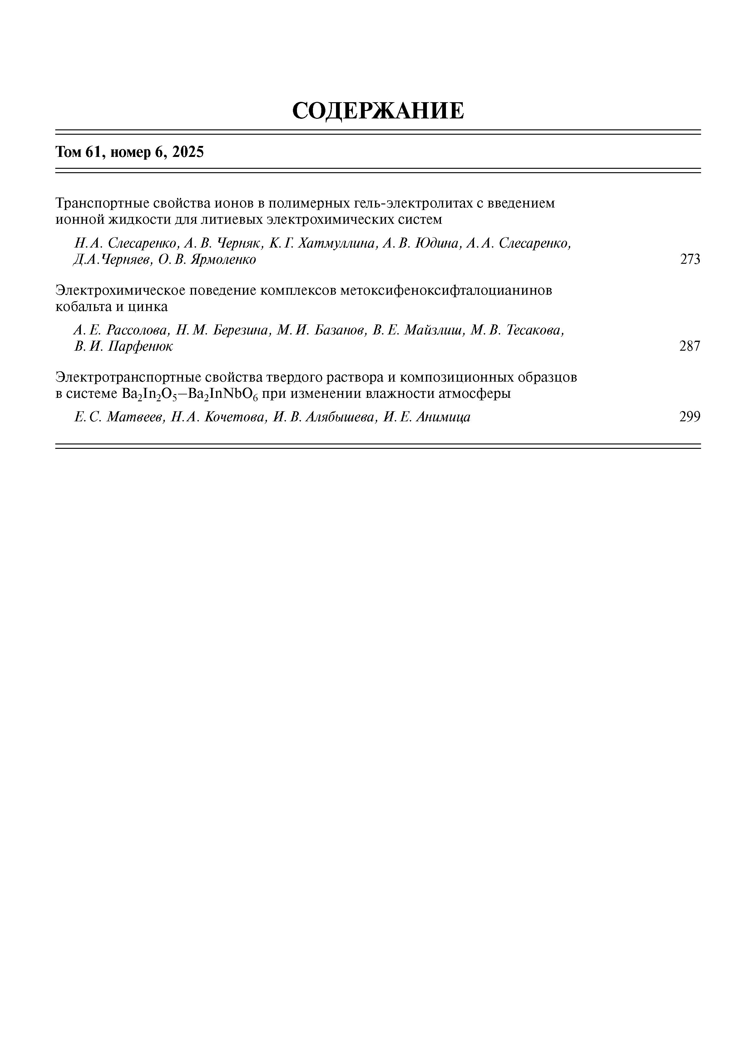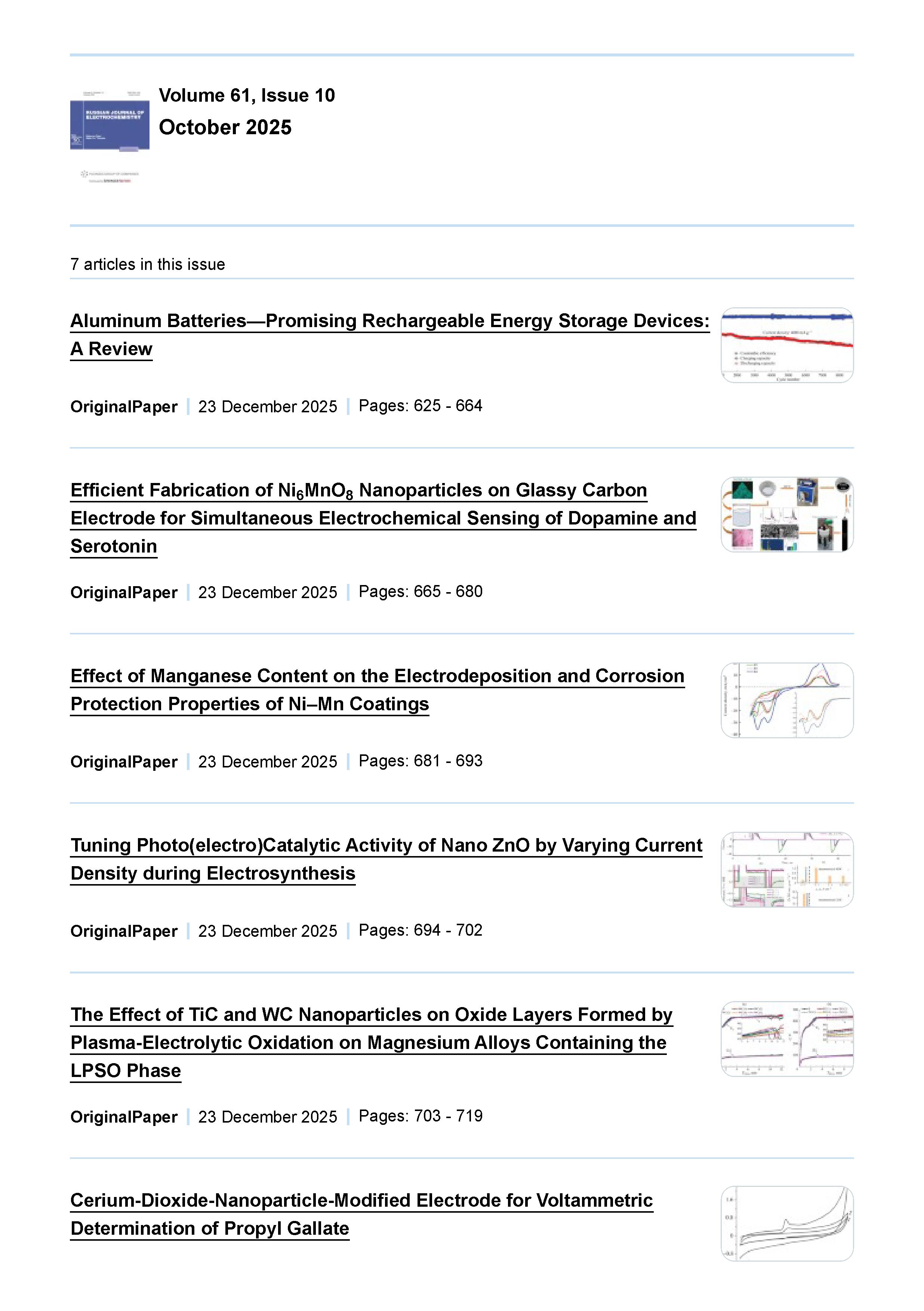 Russian Journal of Electrochemistry 2025 Vol. 61 № 10 | Russian Journal of Electrochemistry 2025 Vol. 61 № 10 | 2025 | 10 |