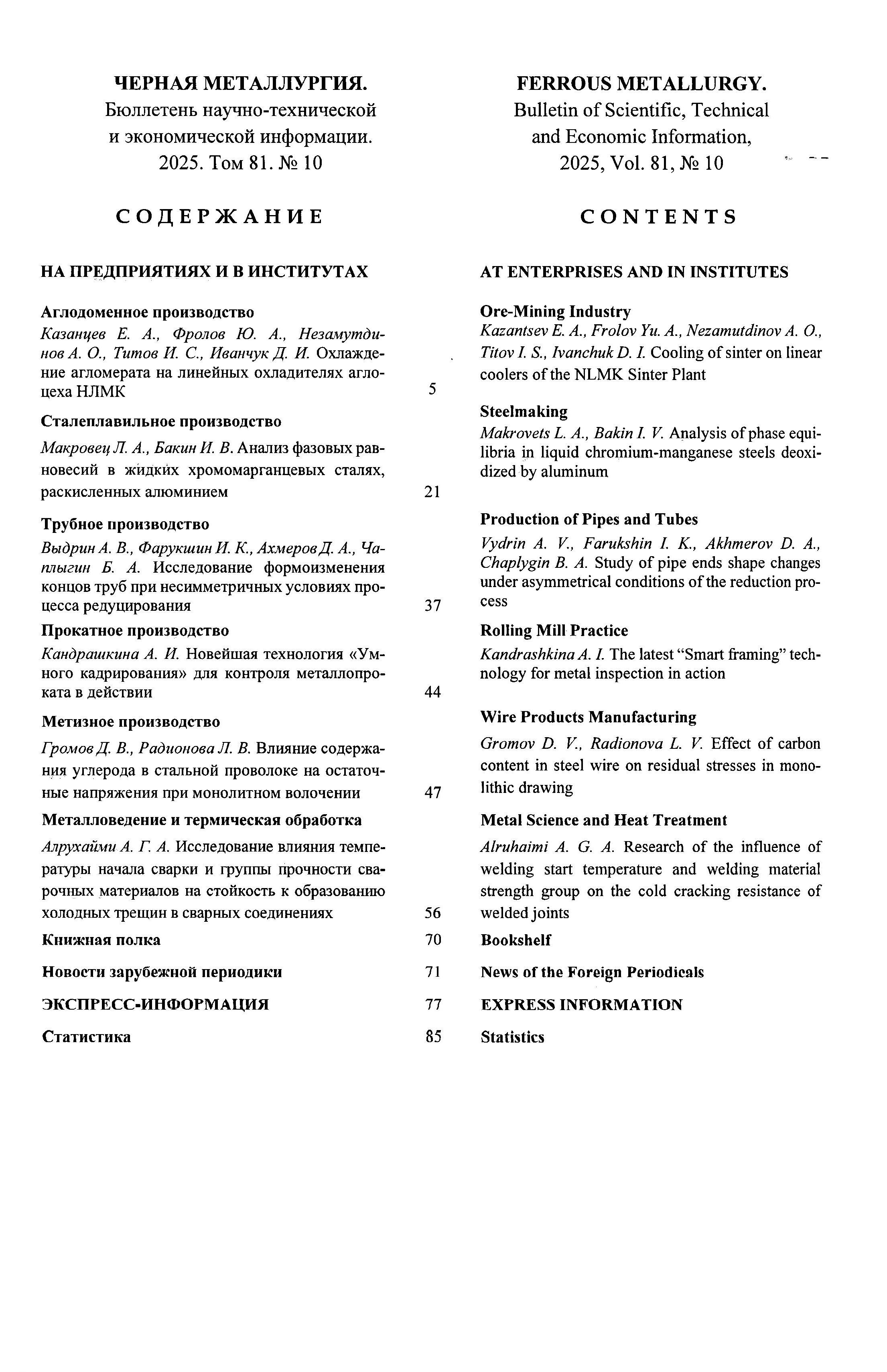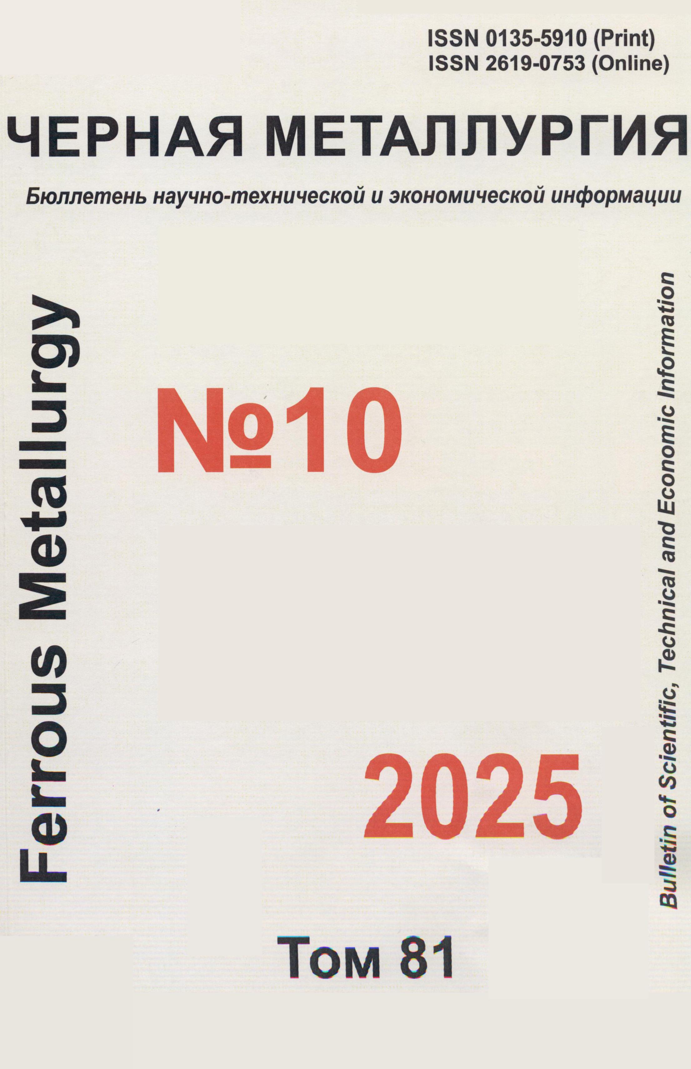 Черная металлургия. Бюллетень 2025 Т. 81 № 10 | Черная металлургия. Бюллетень 2025 Т. 81 № 10 | 2025 | 10 |