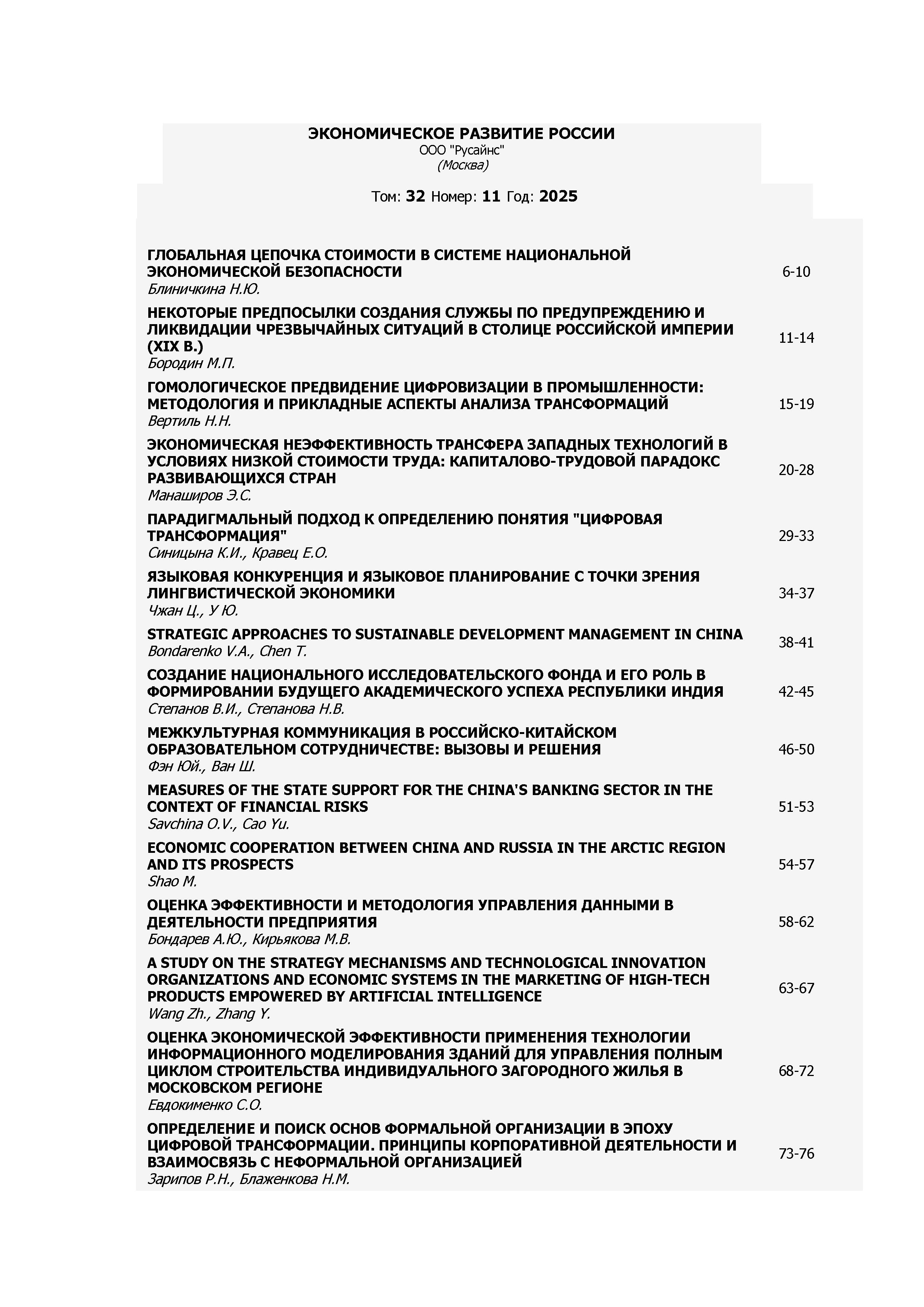 Экономическое развитие России 2025 Т.32 N11 | Экономическое развитие России 2025 Т.32 N11 | 2025 | 11 |