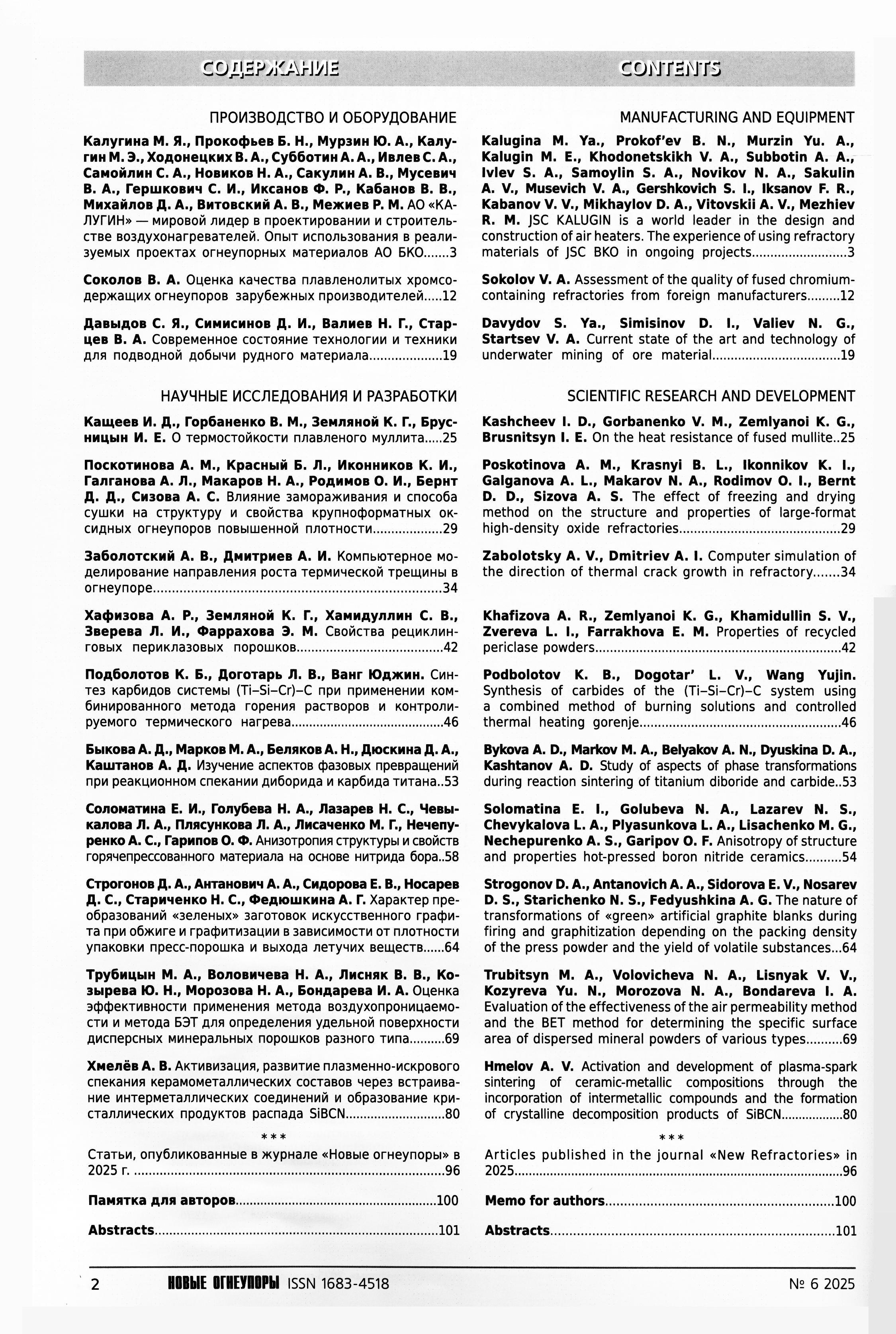 Новые огнеупоры 2025 № 6 | Новые огнеупоры 2025 № 6 | 2025 | 6 |