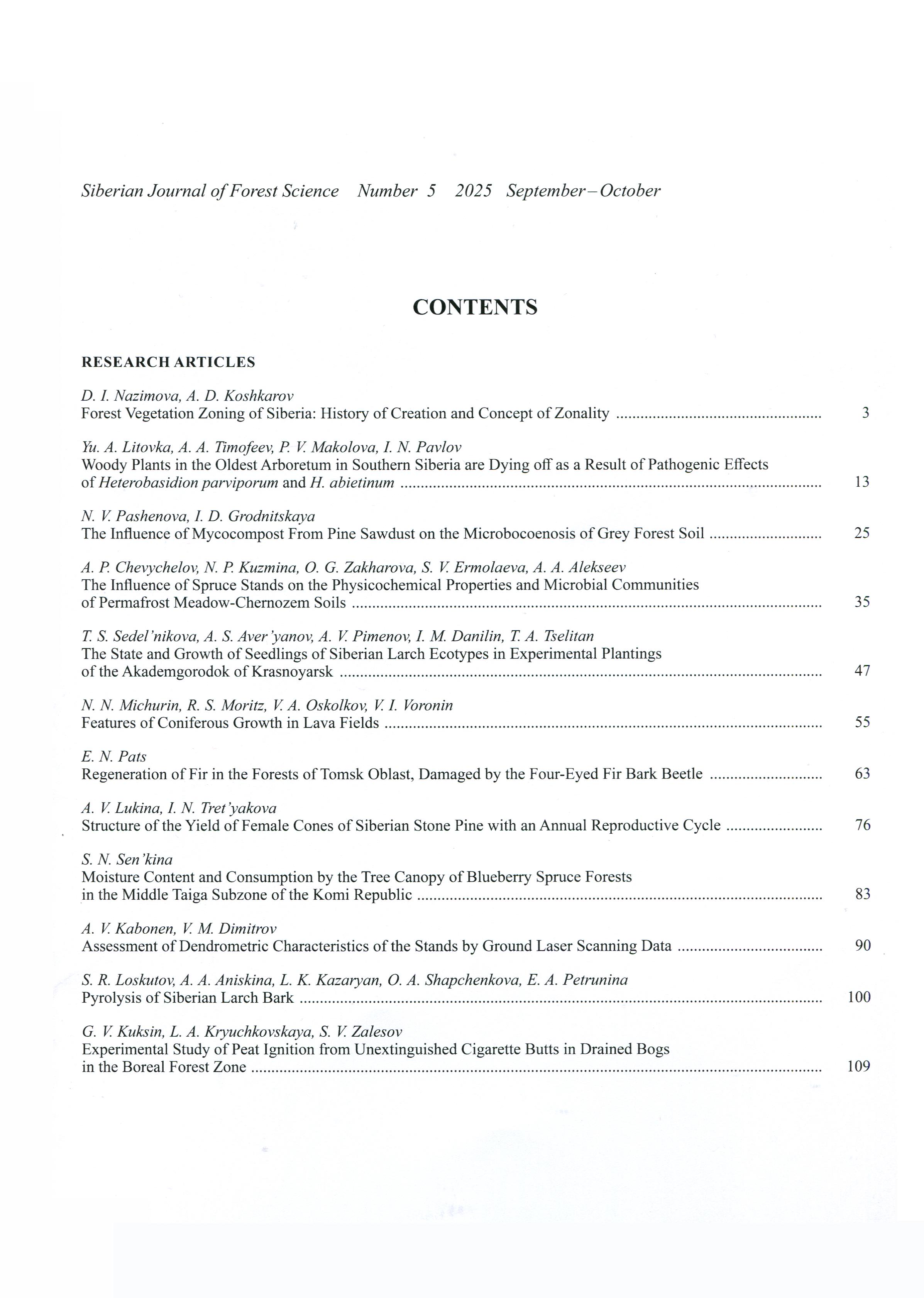 Сибирский лесной журнал 2025 N 5 | Сибирский лесной журнал 2025 N 5 | 2025 | 5 |