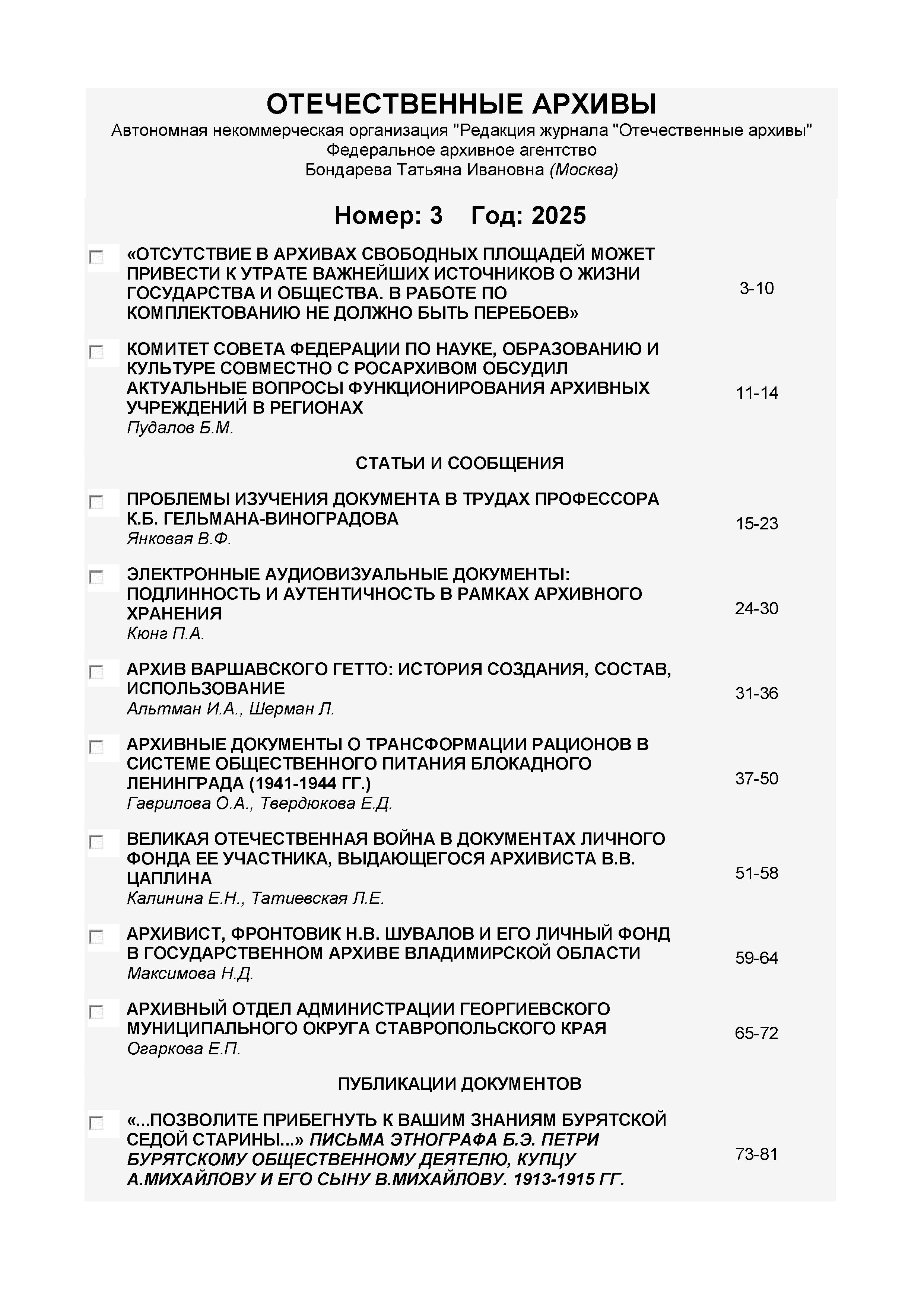 Отечественные архивы 2025 № 3 | Отечественные архивы 2025 № 3 | 2025 | 3 |