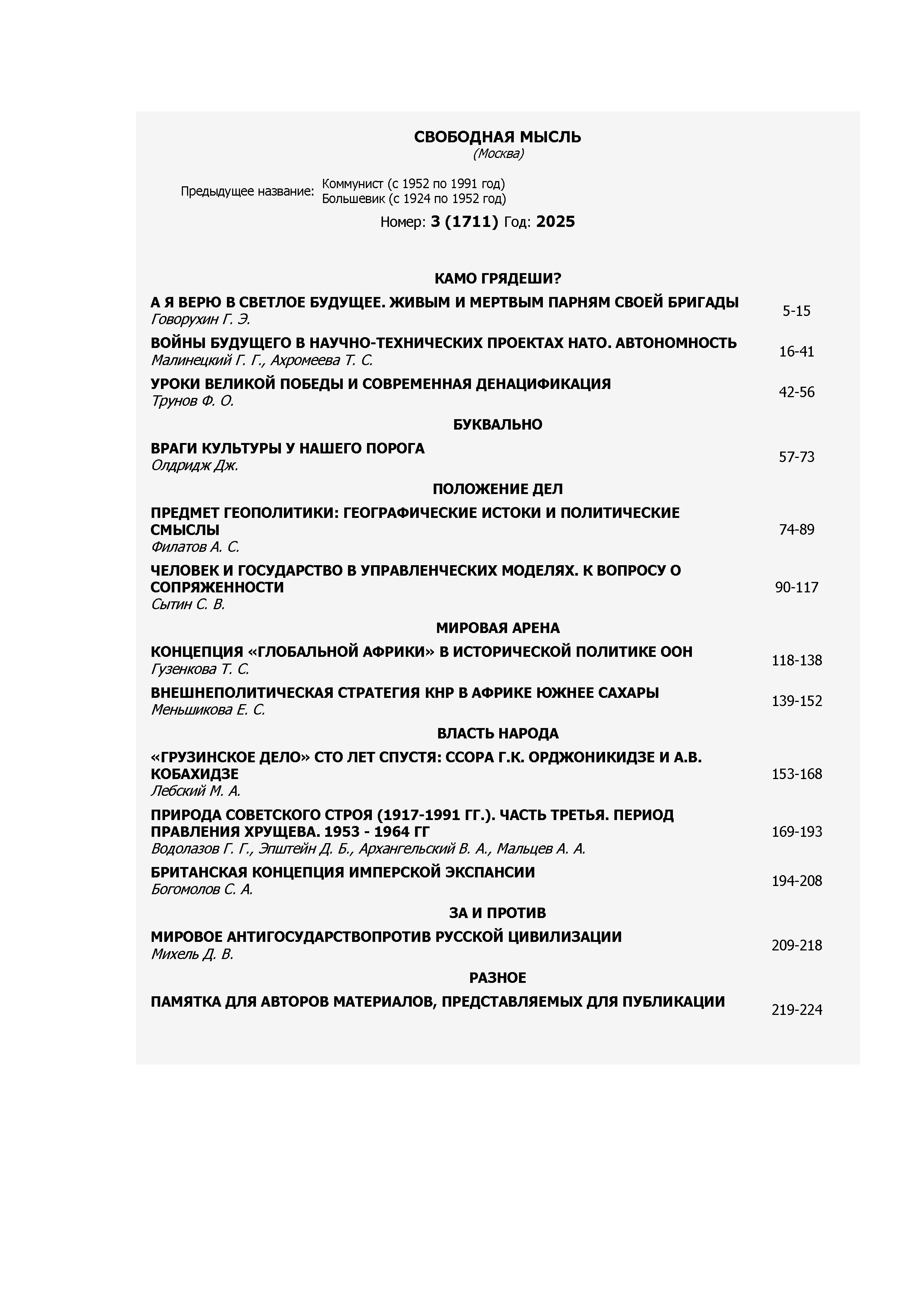 Свободная мысль 2025 N 3 | Свободная мысль 2025 N 3 | 2025 | 3 |