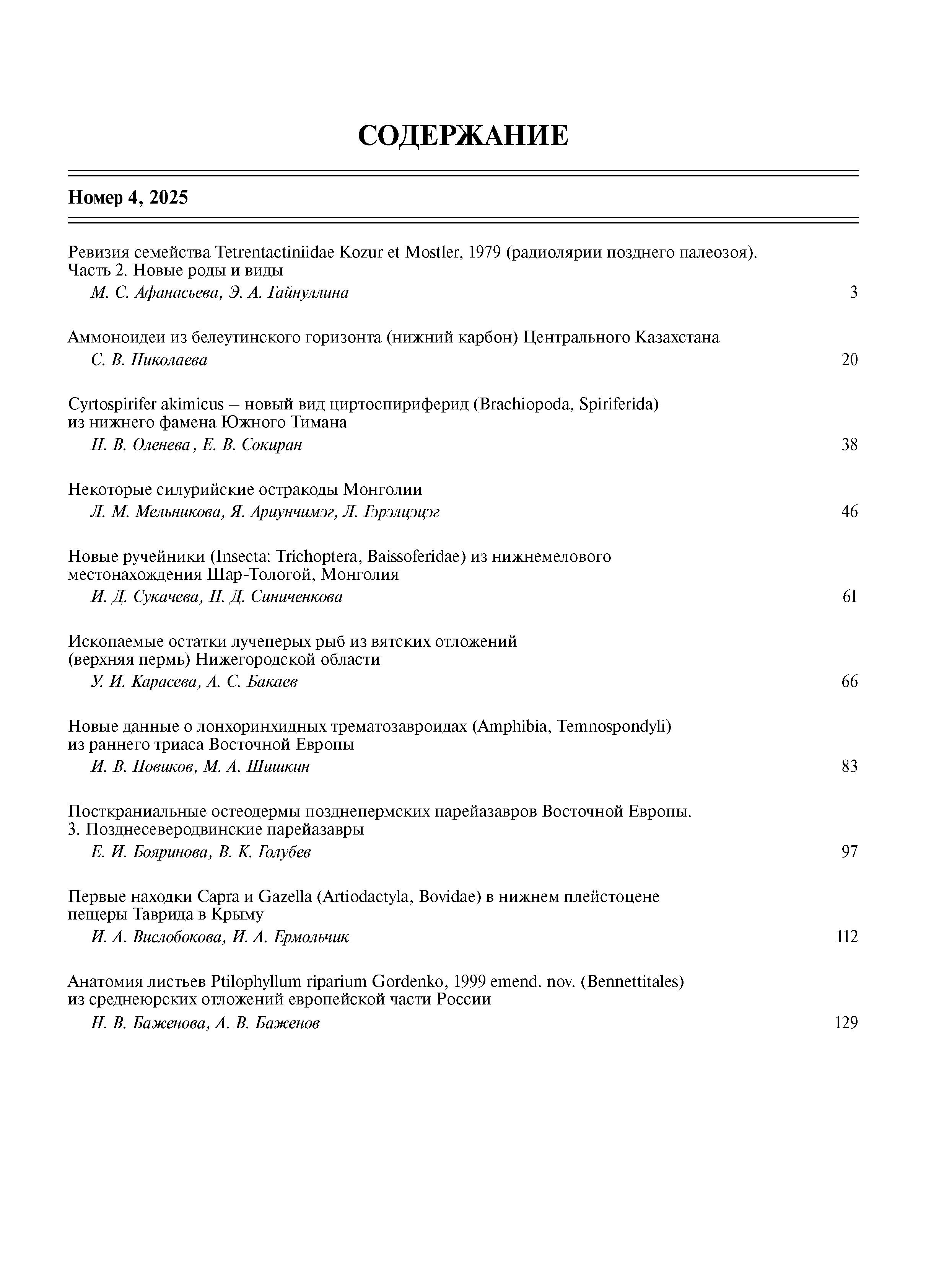 Палеонтологический журнал 2025 N 4 | Палеонтологический журнал 2025 N 4 | 2025 | 4 |