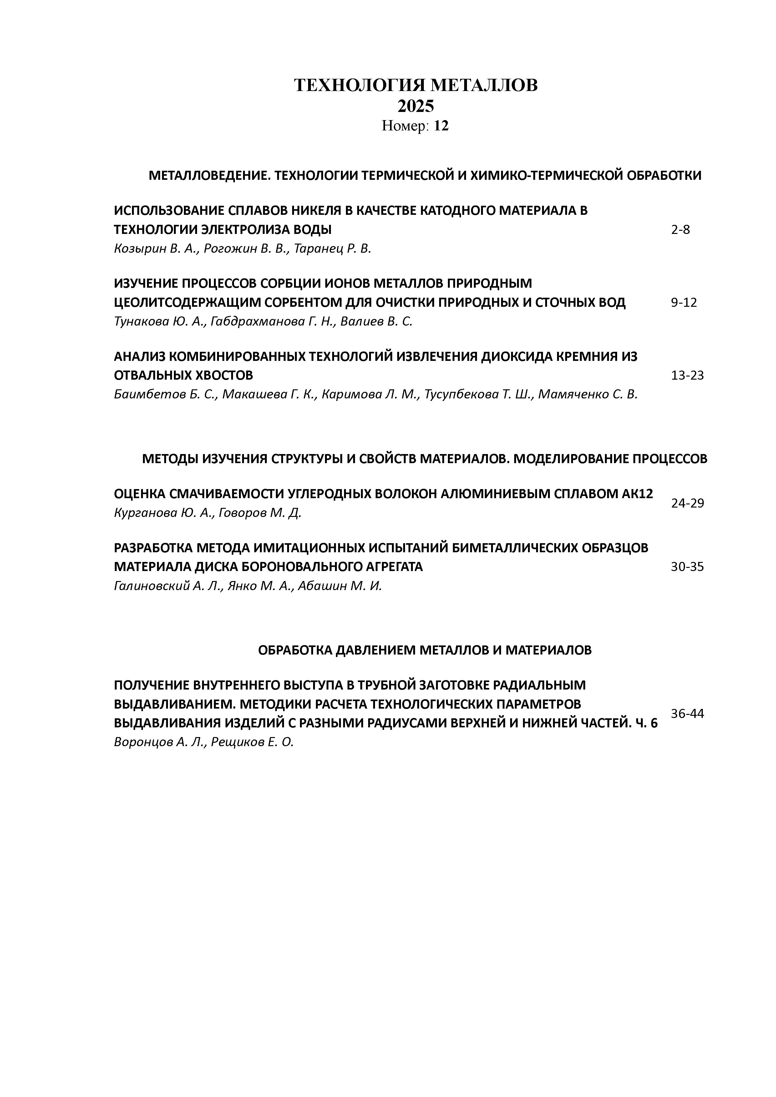Технология металлов 2025 №12 | Технология металлов 2025 №12 | 2025 | 12 |