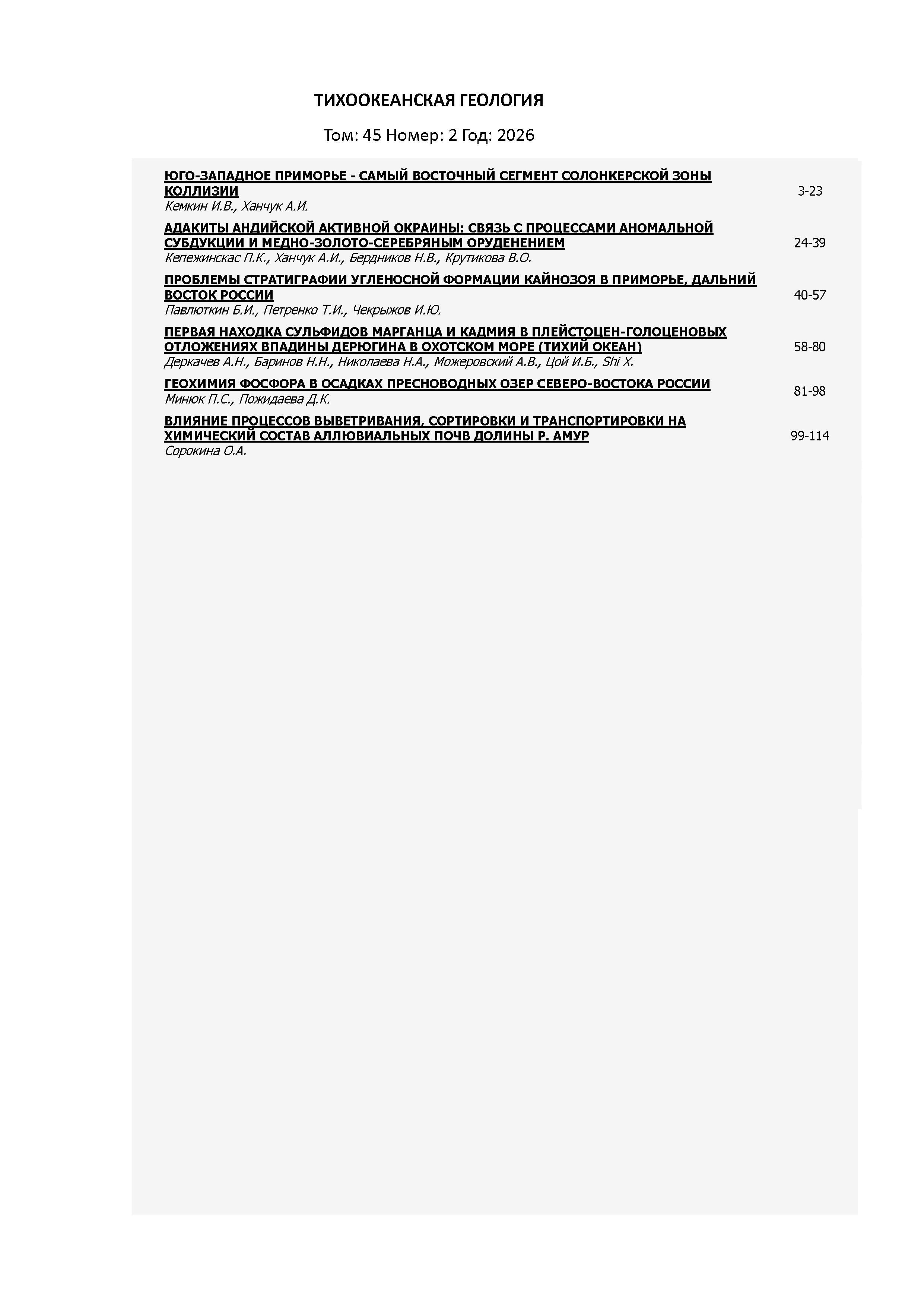 Тихоокеанская геология 2026 Т. 45 № 2 |