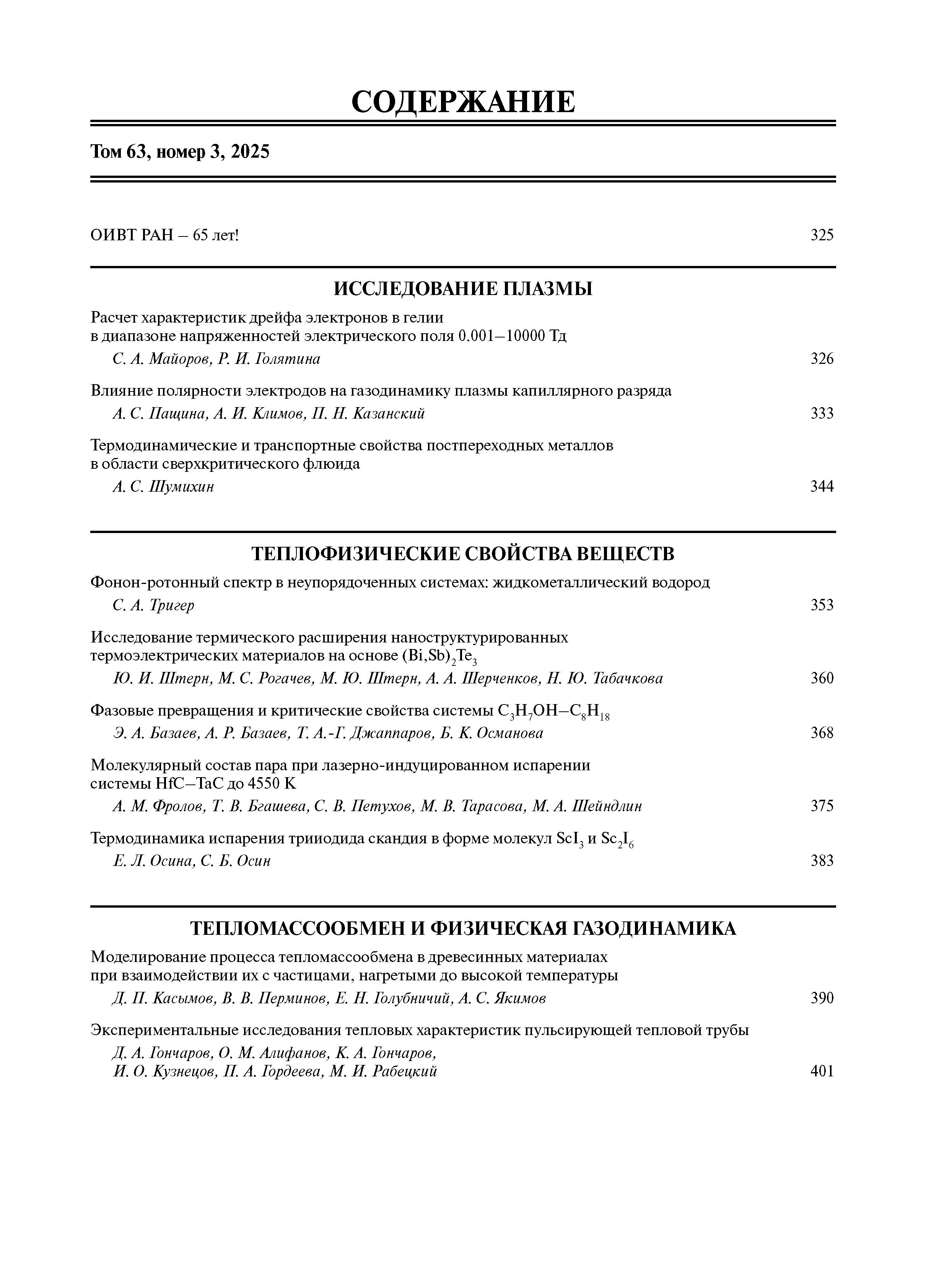 Теплофизика высоких температур 2025 Т.63 № 3 |