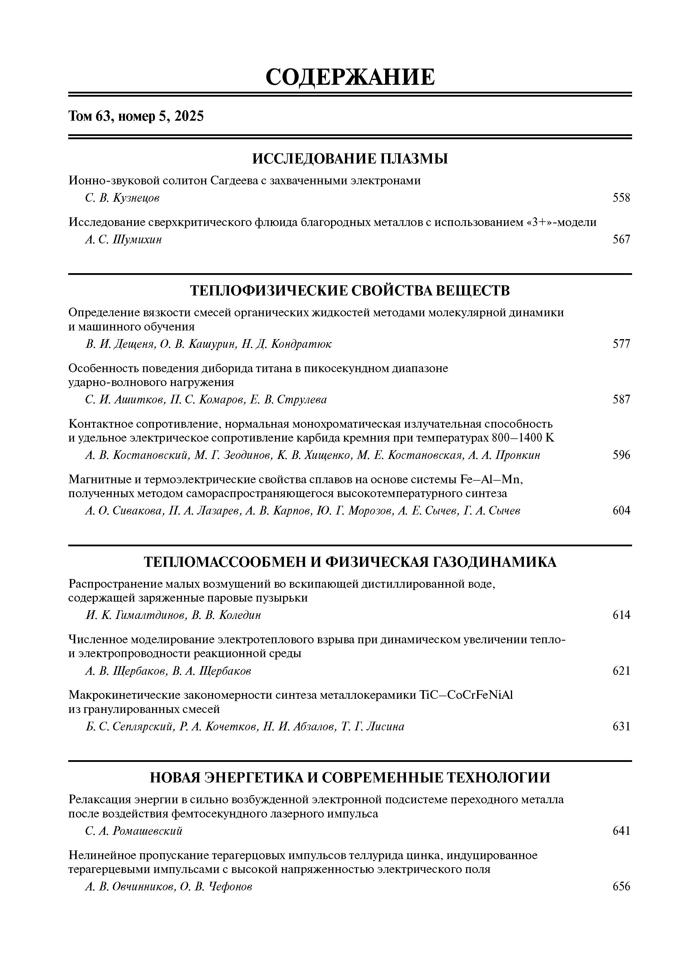 Теплофизика высоких температур 2025 Т.63 № 5 |