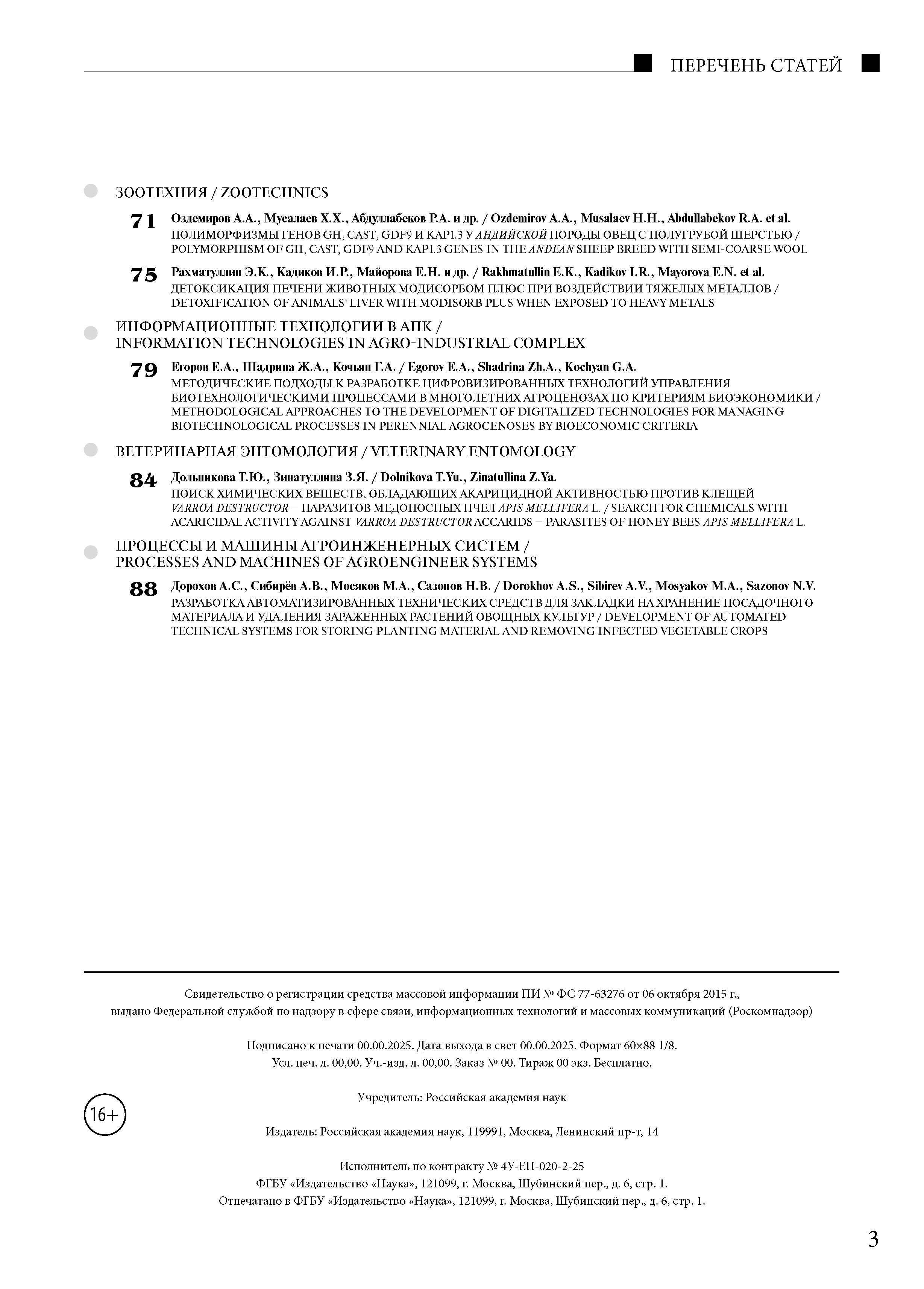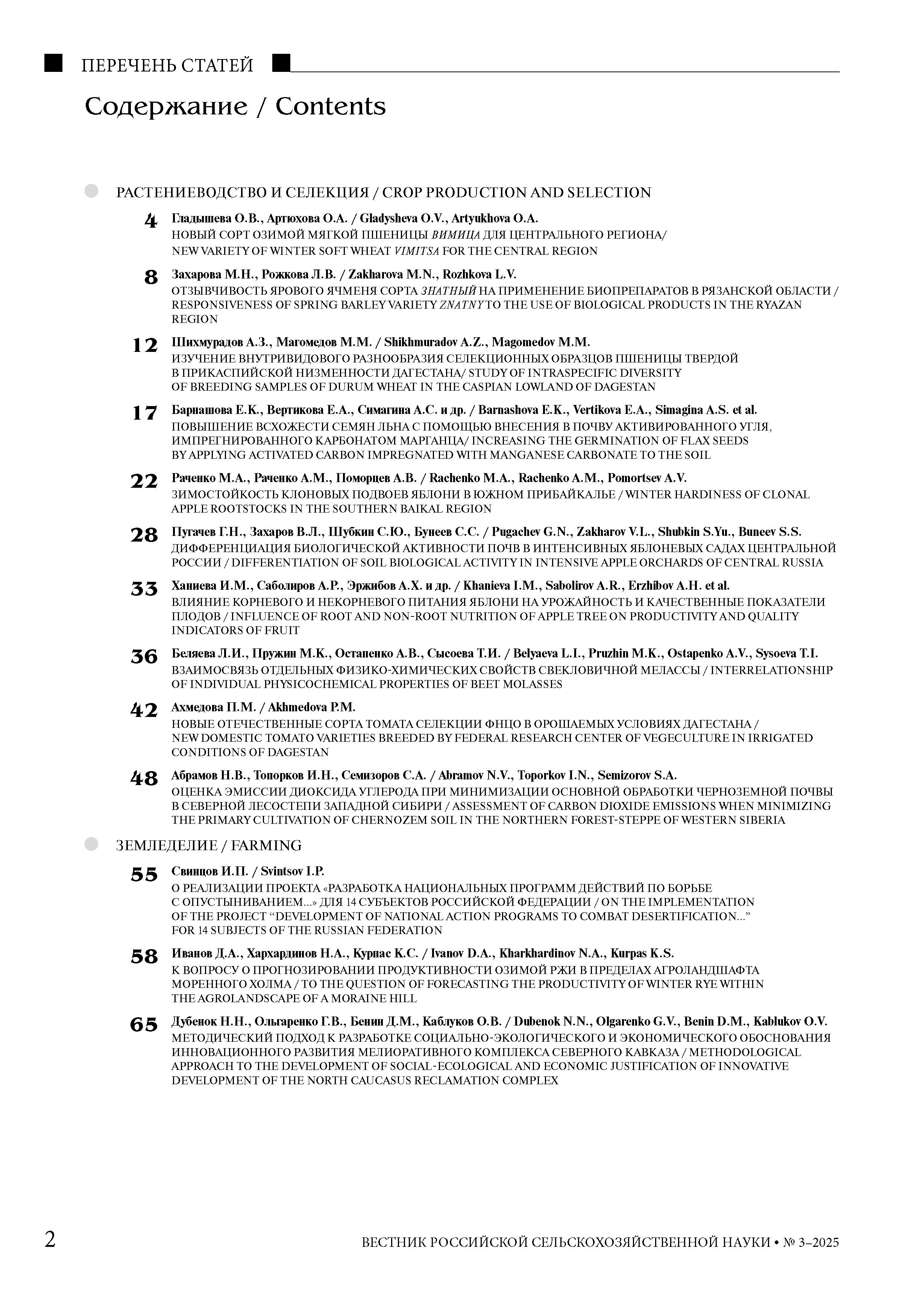 Вестник Российской сельскохозяйственной науки 2025 № 3 |