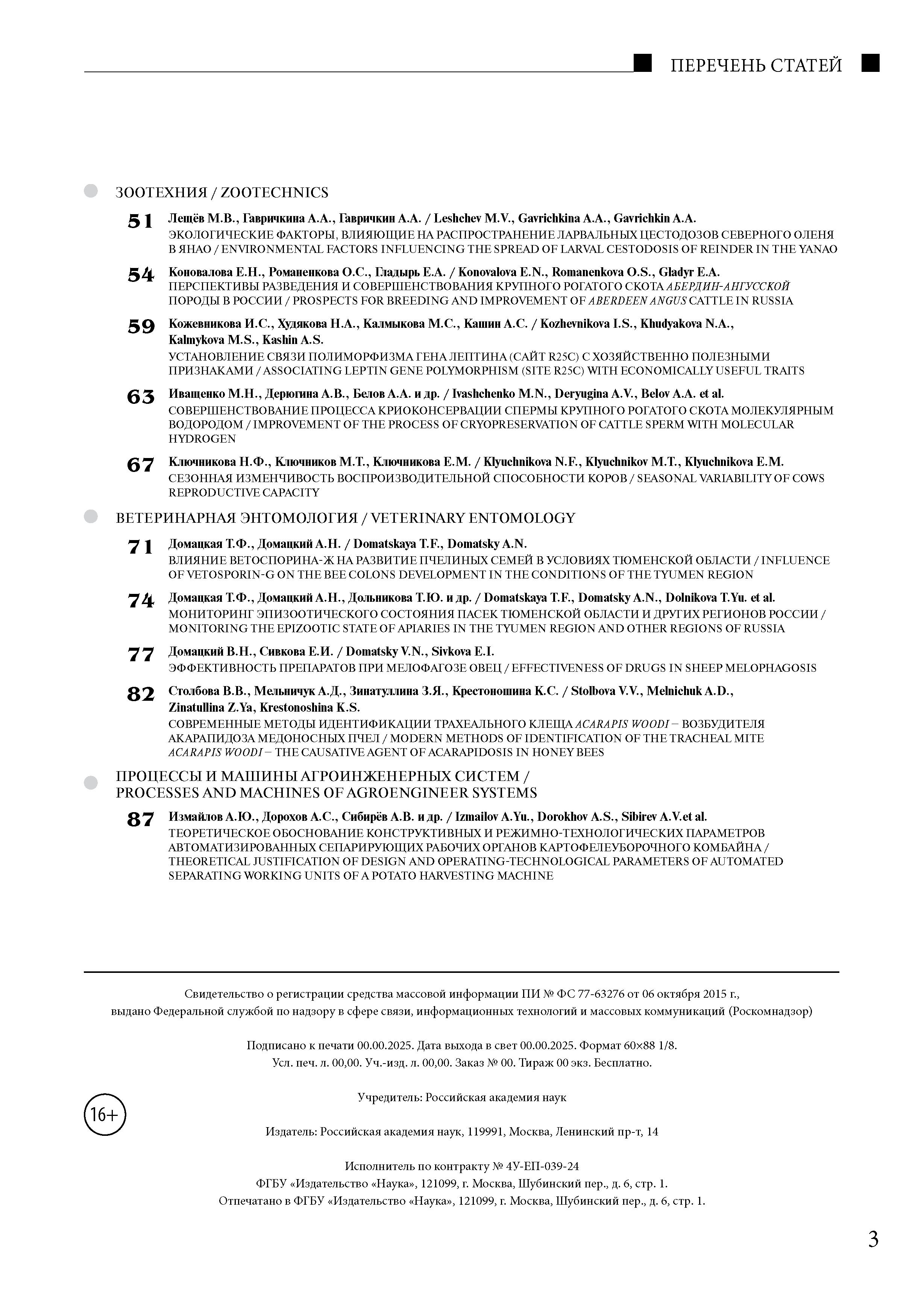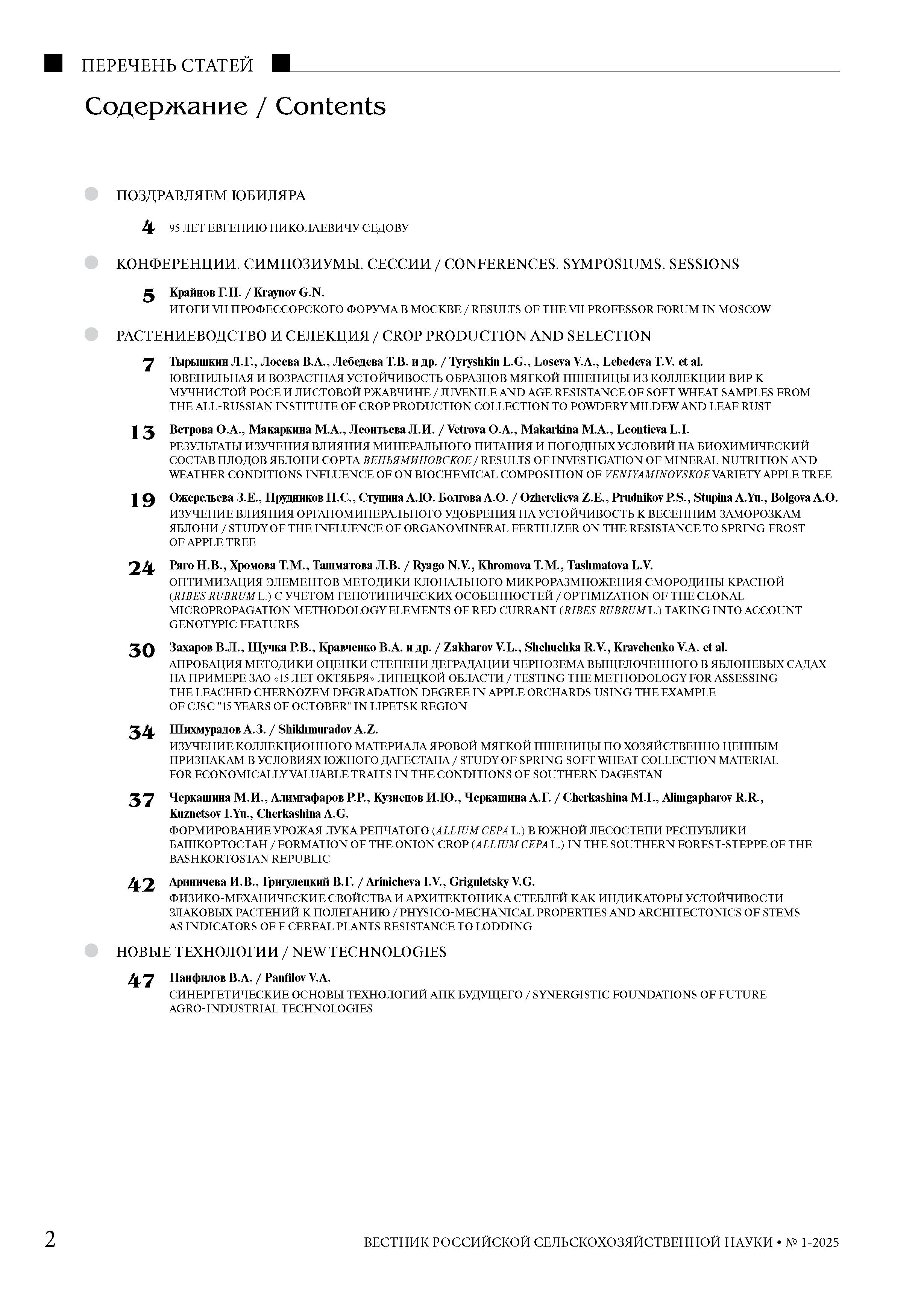 Вестник Российской сельскохозяйственной науки 2025 № 2 |