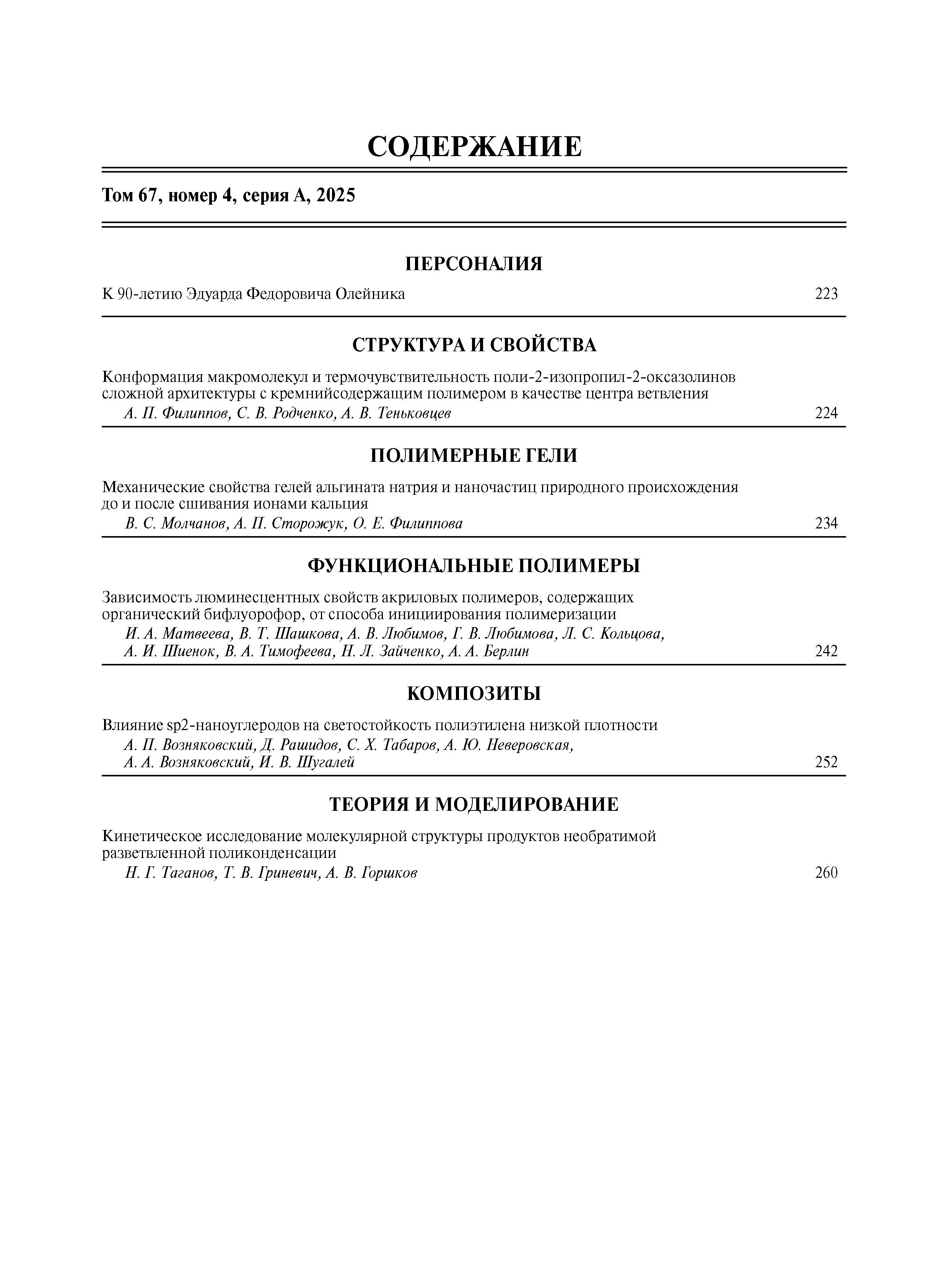 Высокомолекулярные соединения. Серия А 2025 Т.67 № 4 |