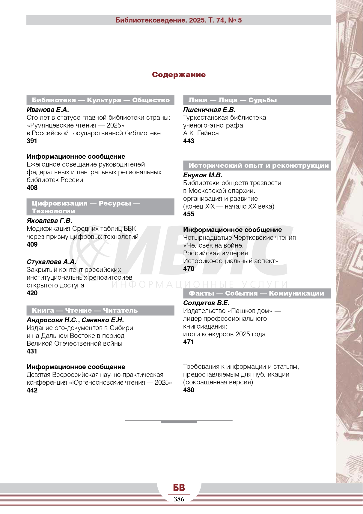 Библиотековедение 2025 Т. 74 № 5 |