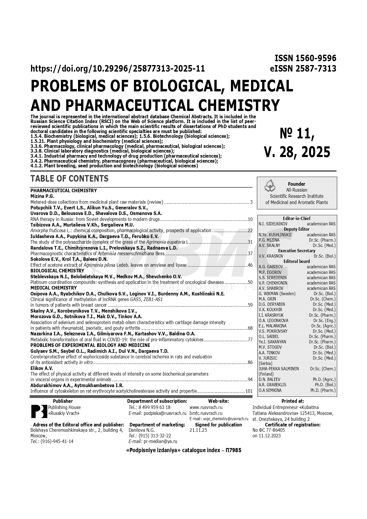 Вопросы биологической, медицинской и фармацевтической химии 2025 №11 |