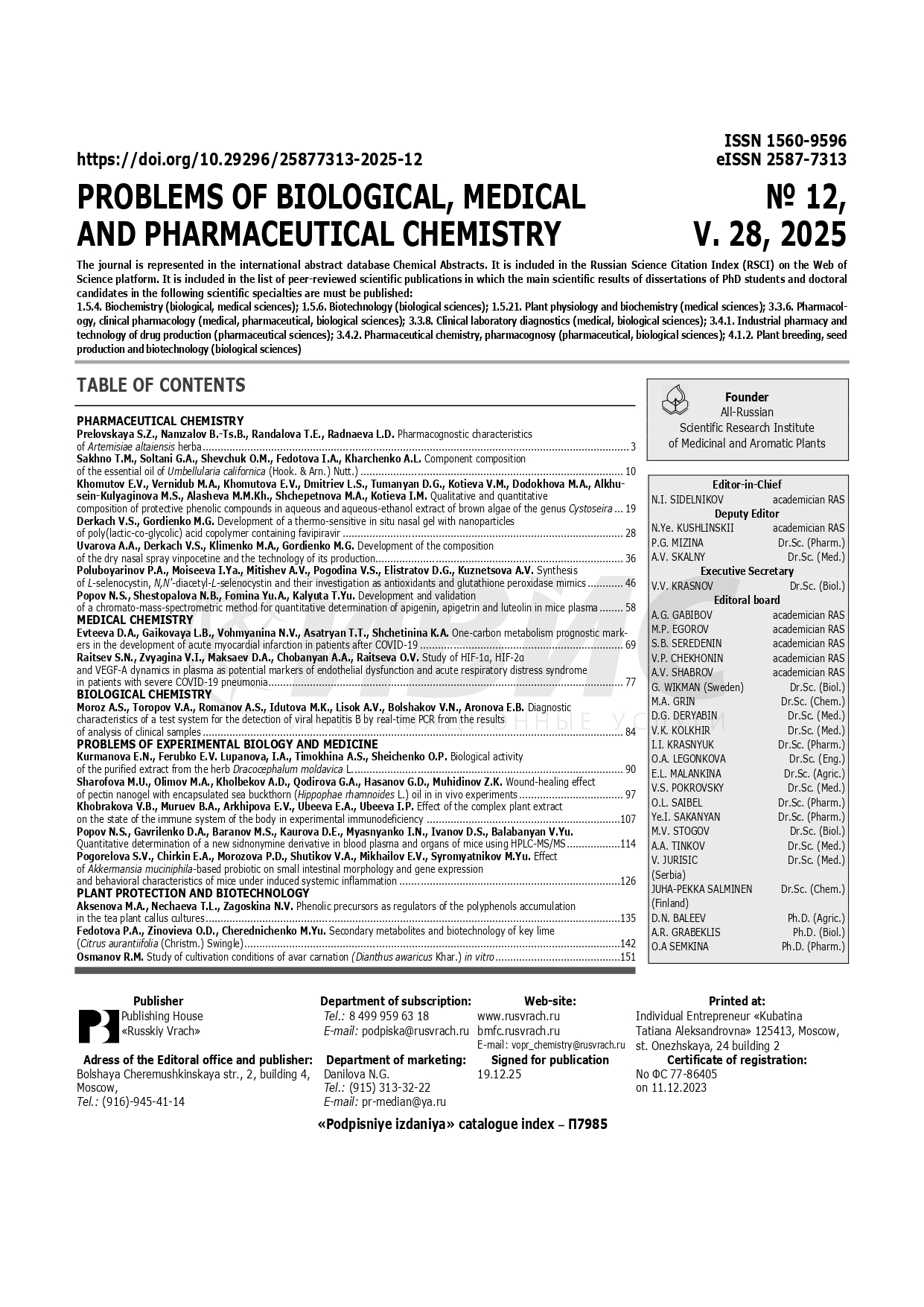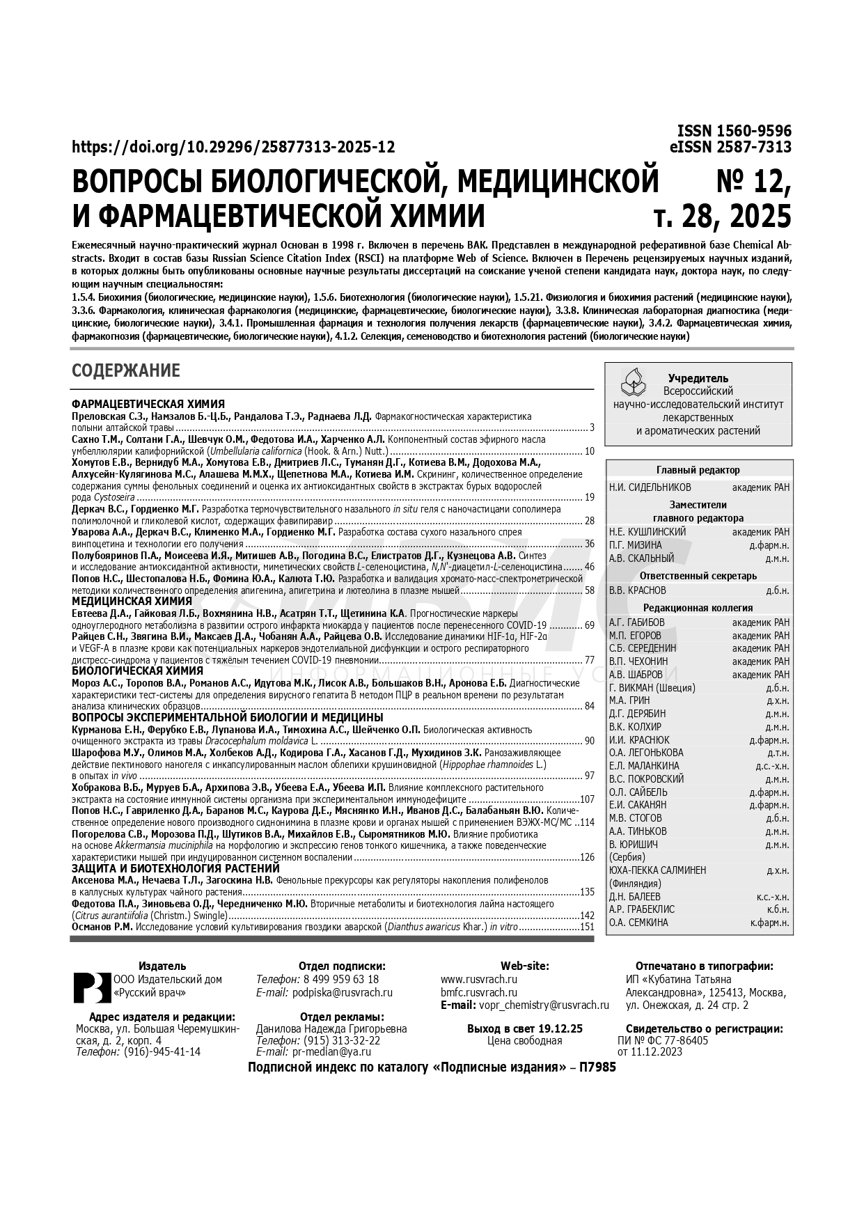 Вопросы биологической, медицинской и фармацевтической химии 2025 №12 |