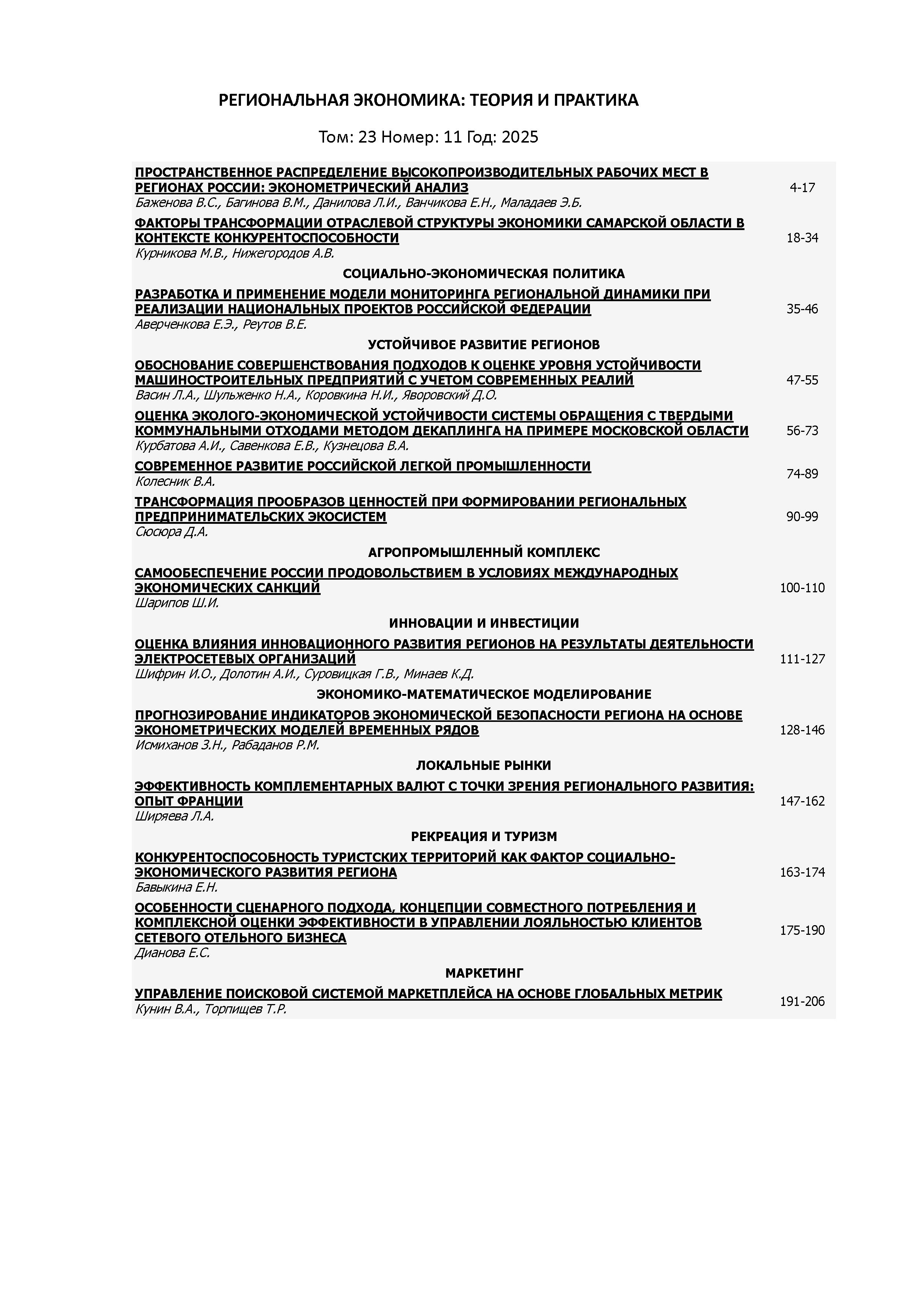 Региональная экономика: теория и практика 2025 N11 |
