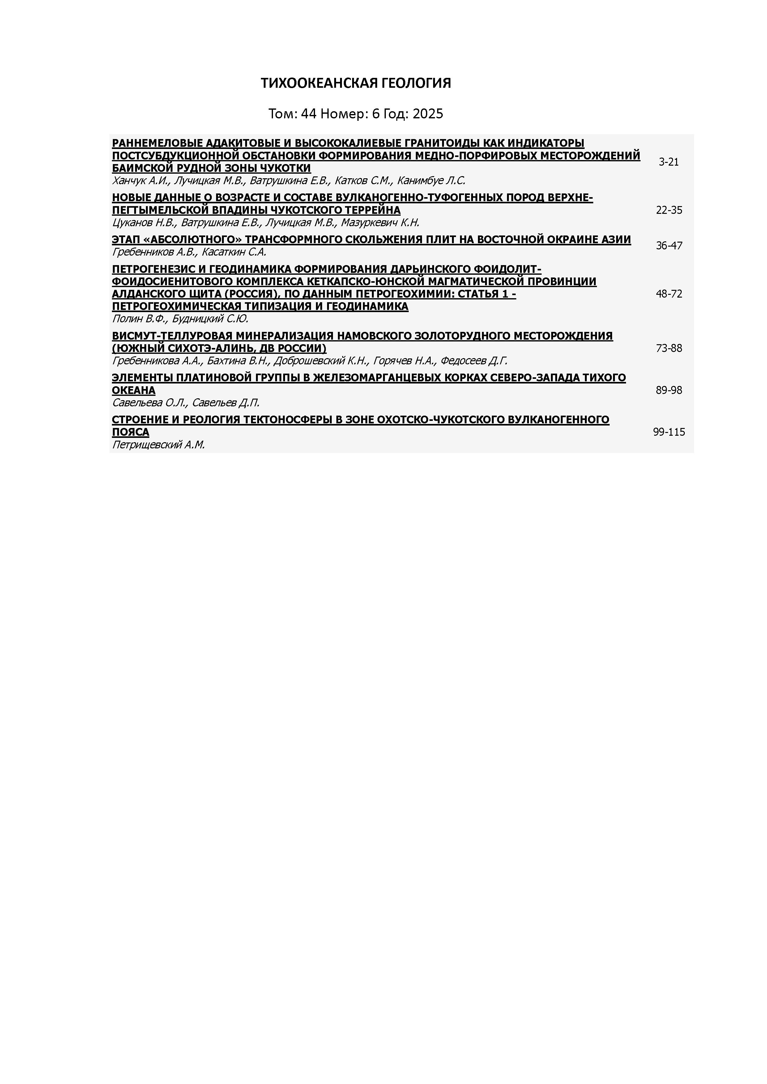 Тихоокеанская геология 2025 Т. 44 № 6 |