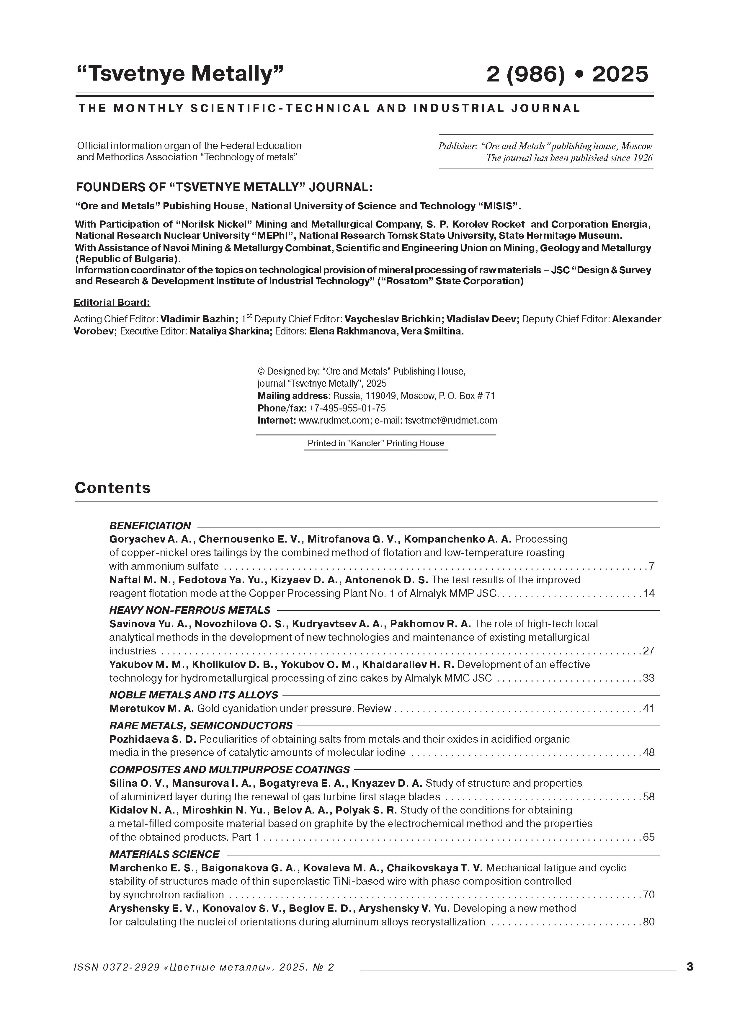 Цветные металлы 2026 № 2 | Цветные металлы 2026 № 2 | 2026 | 2 |