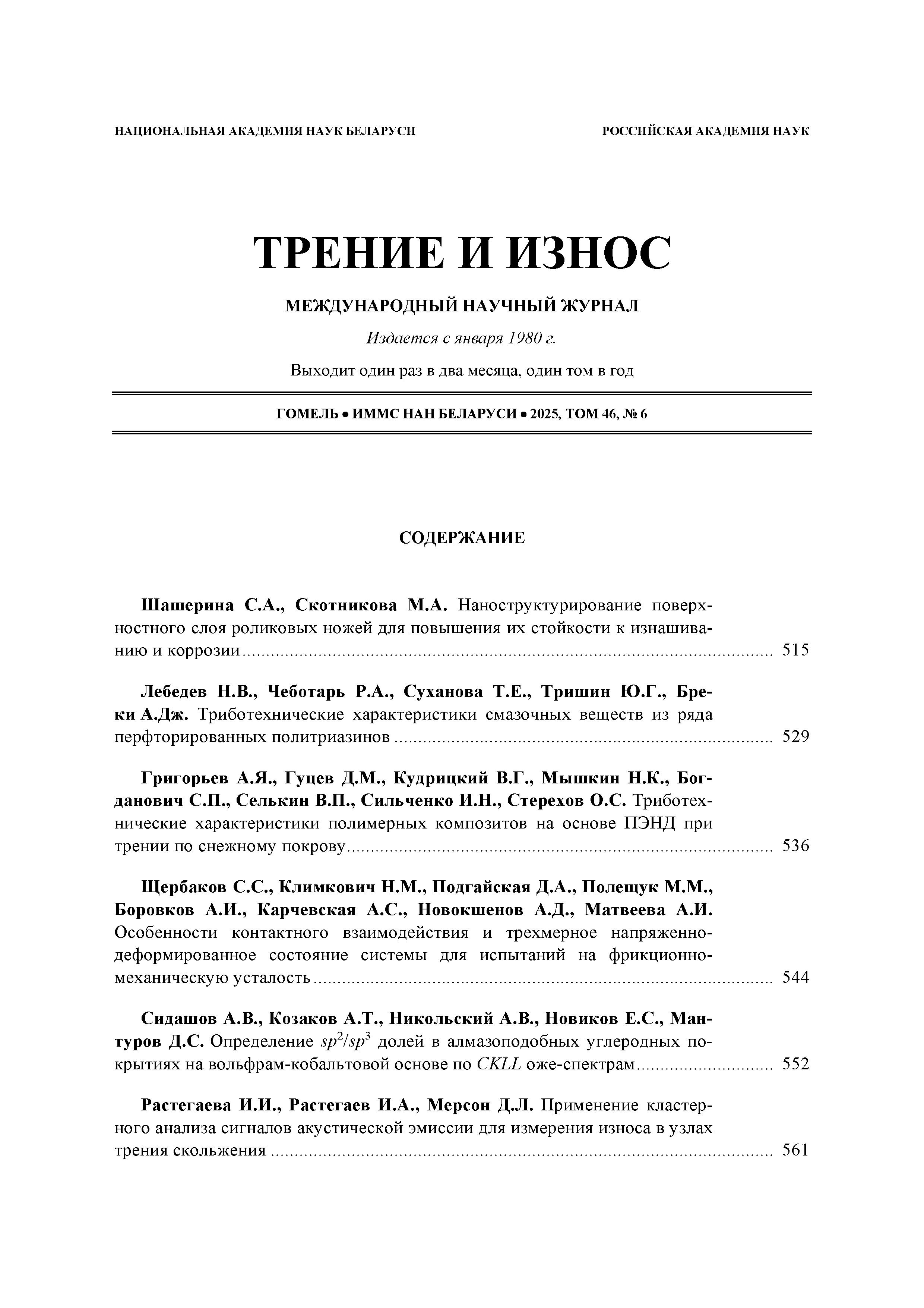 Трение и износ 2025 Т.46 N 6 | Трение и износ 2025 Т.46 N 6 | 2025 | 6 |