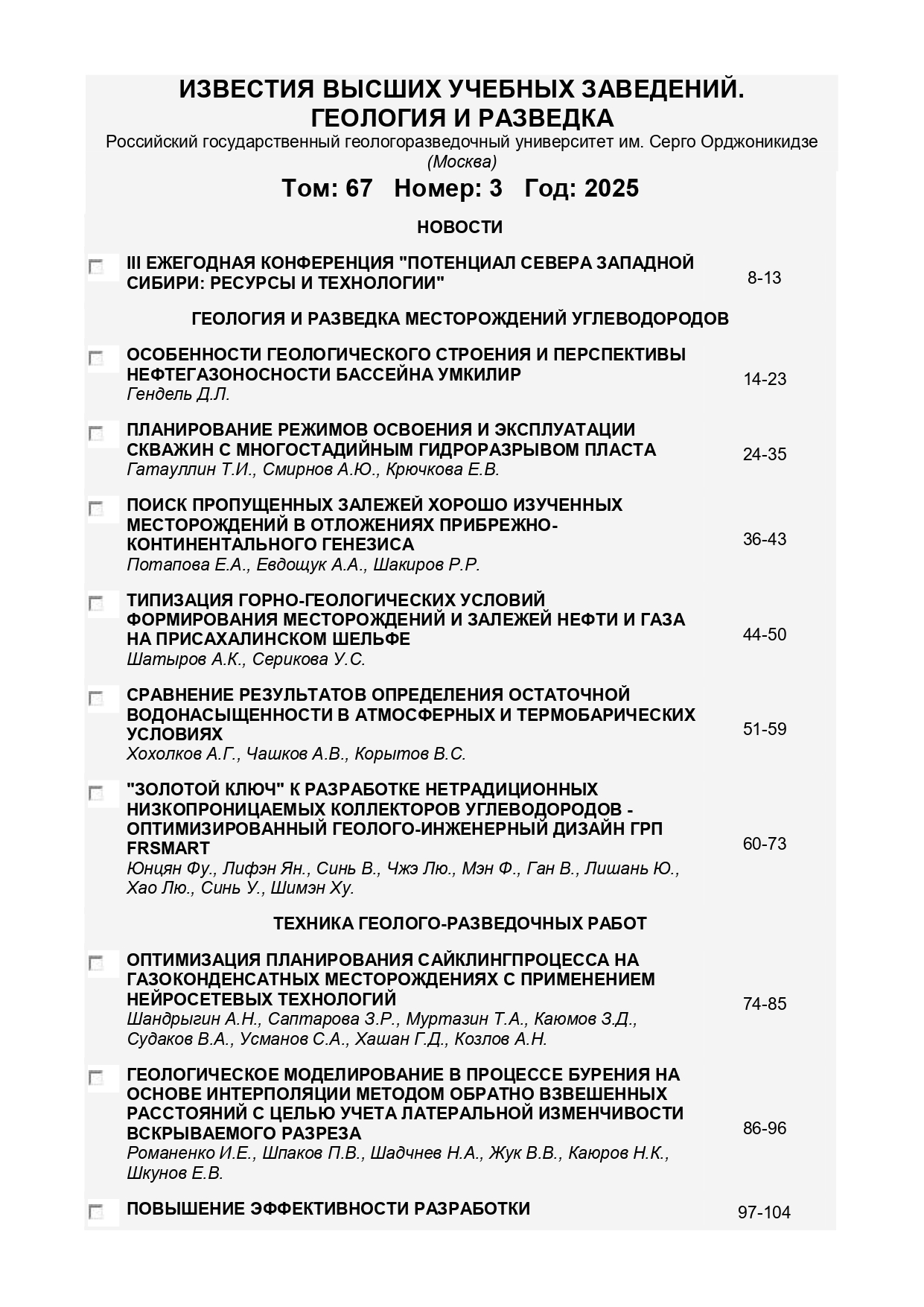 Известия ВУЗов. Сер. Геология и разведка 2025 № 3 |