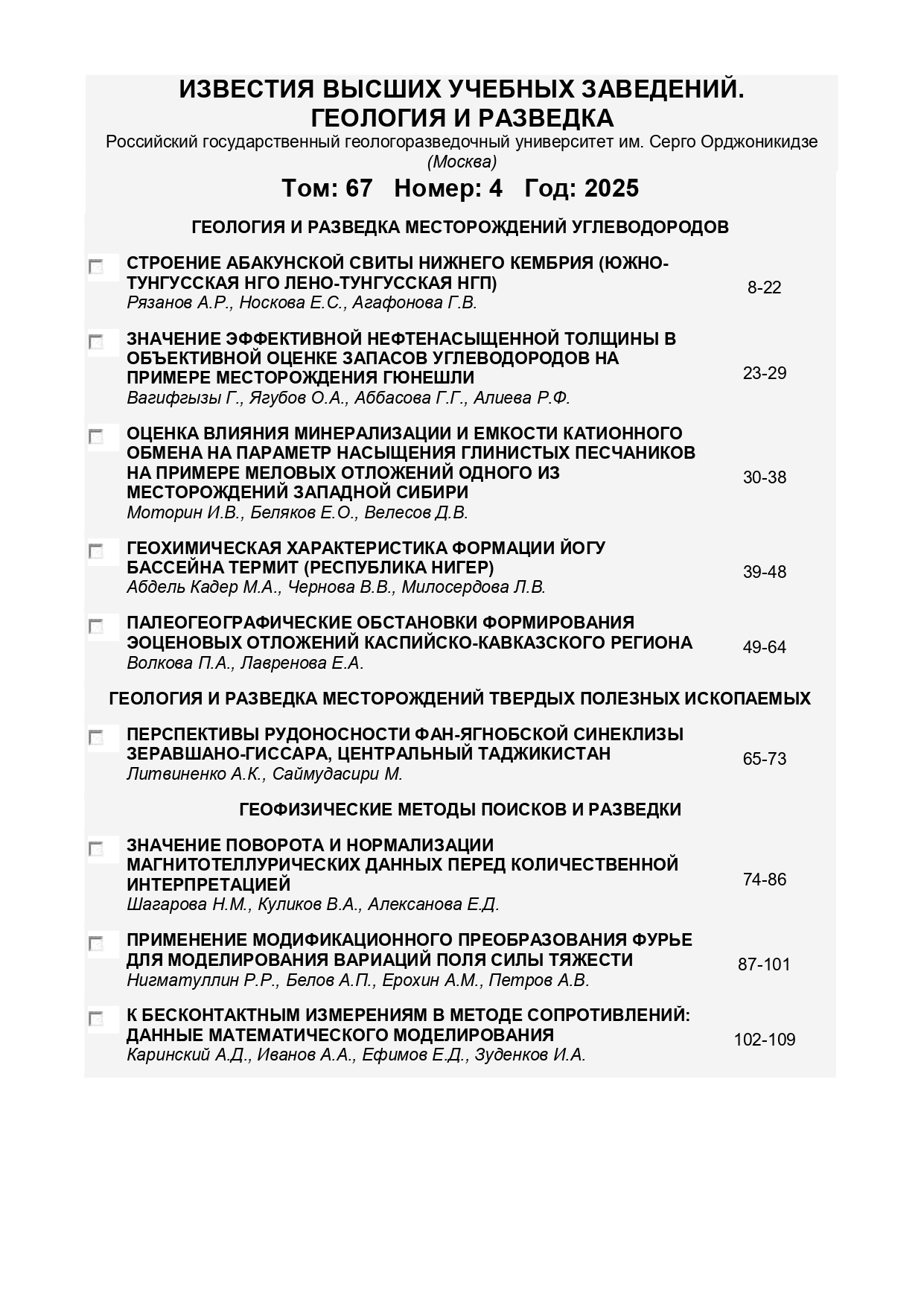 Известия ВУЗов. Сер. Геология и разведка 2025 № 4 |