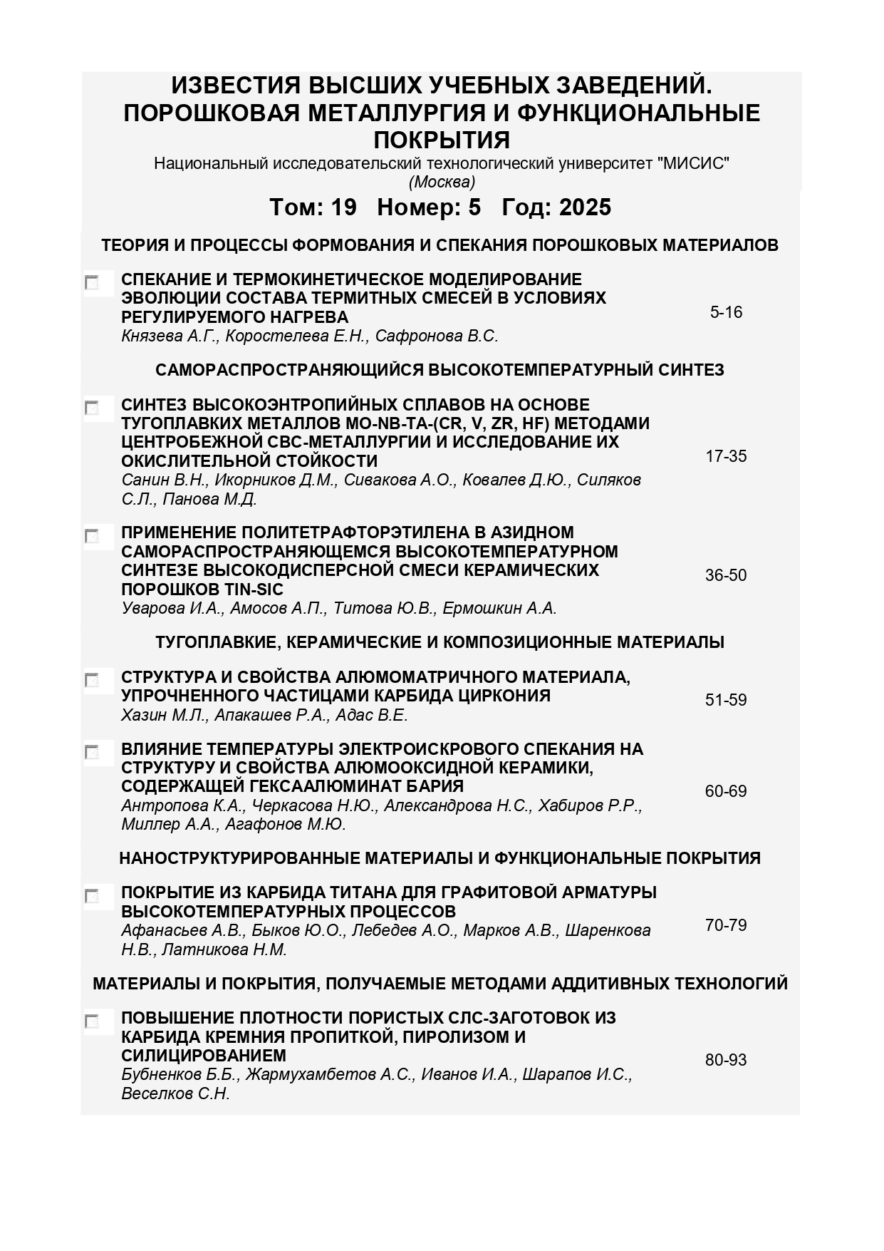 Известия ВУЗов. Сер. Порошковая металлургия и функциональные покрытия 2025 № 5 |