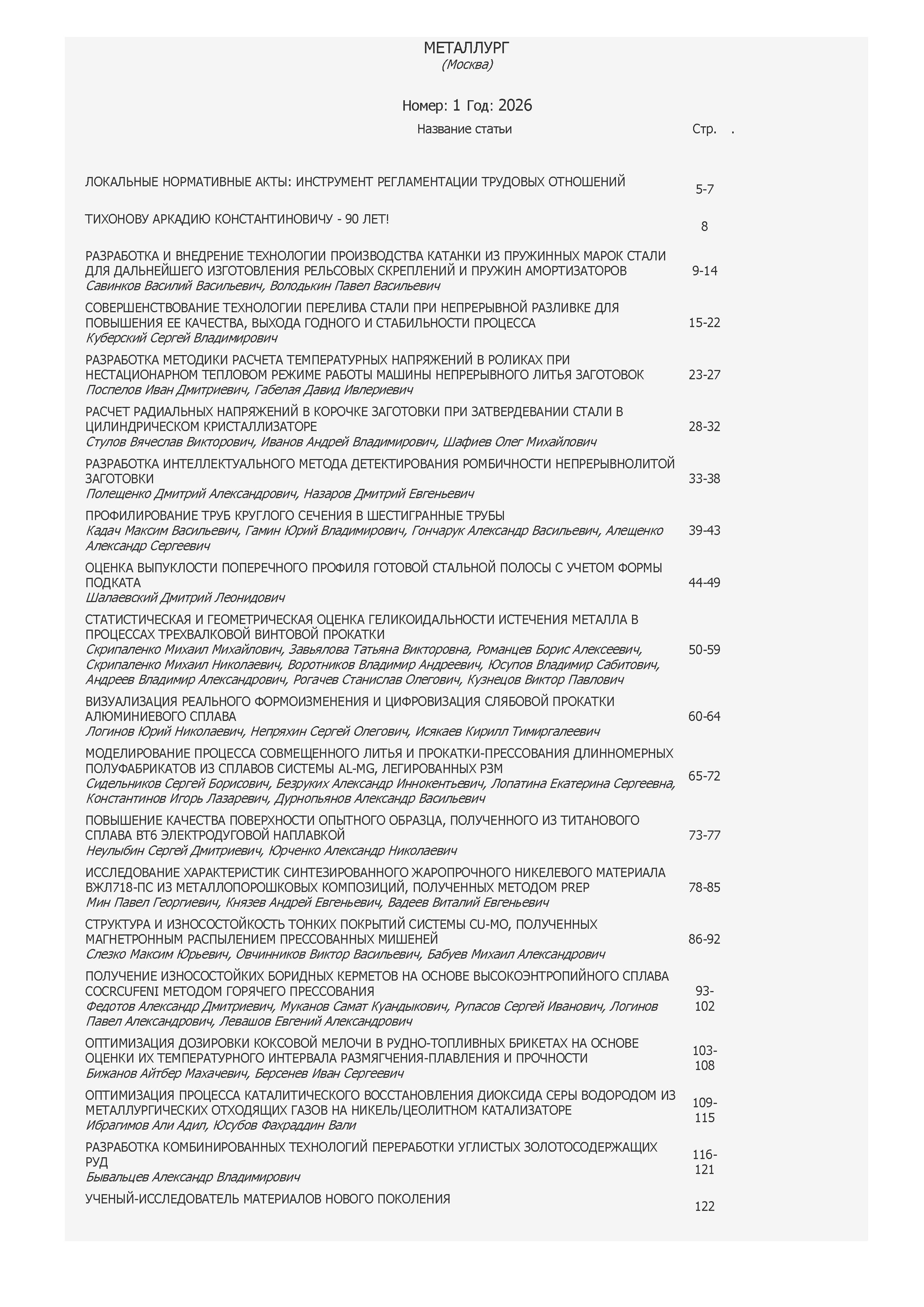 Металлург 2026 № 1 |
