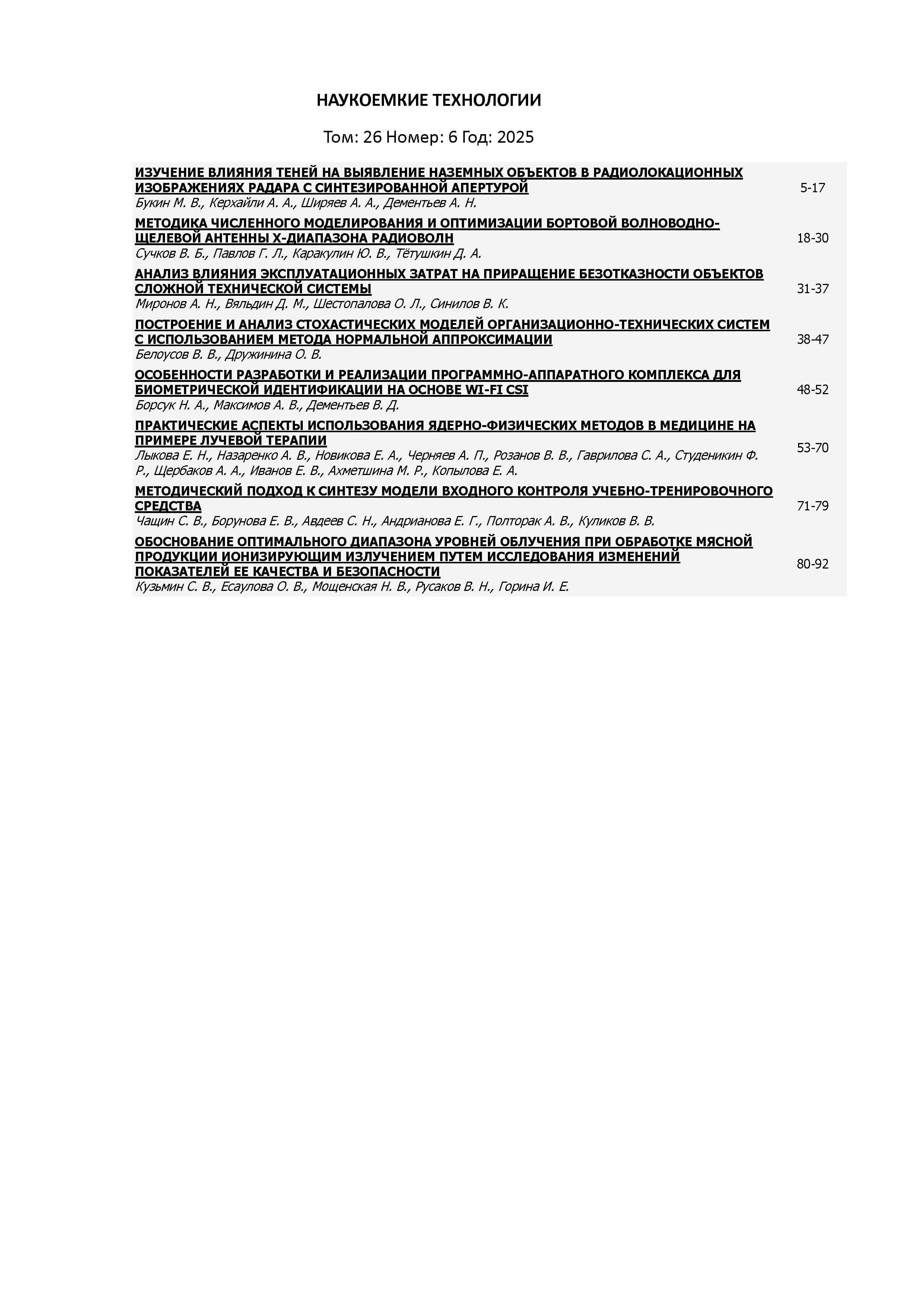 Наукоемкие технологии 2025 т. 26 № 6 |