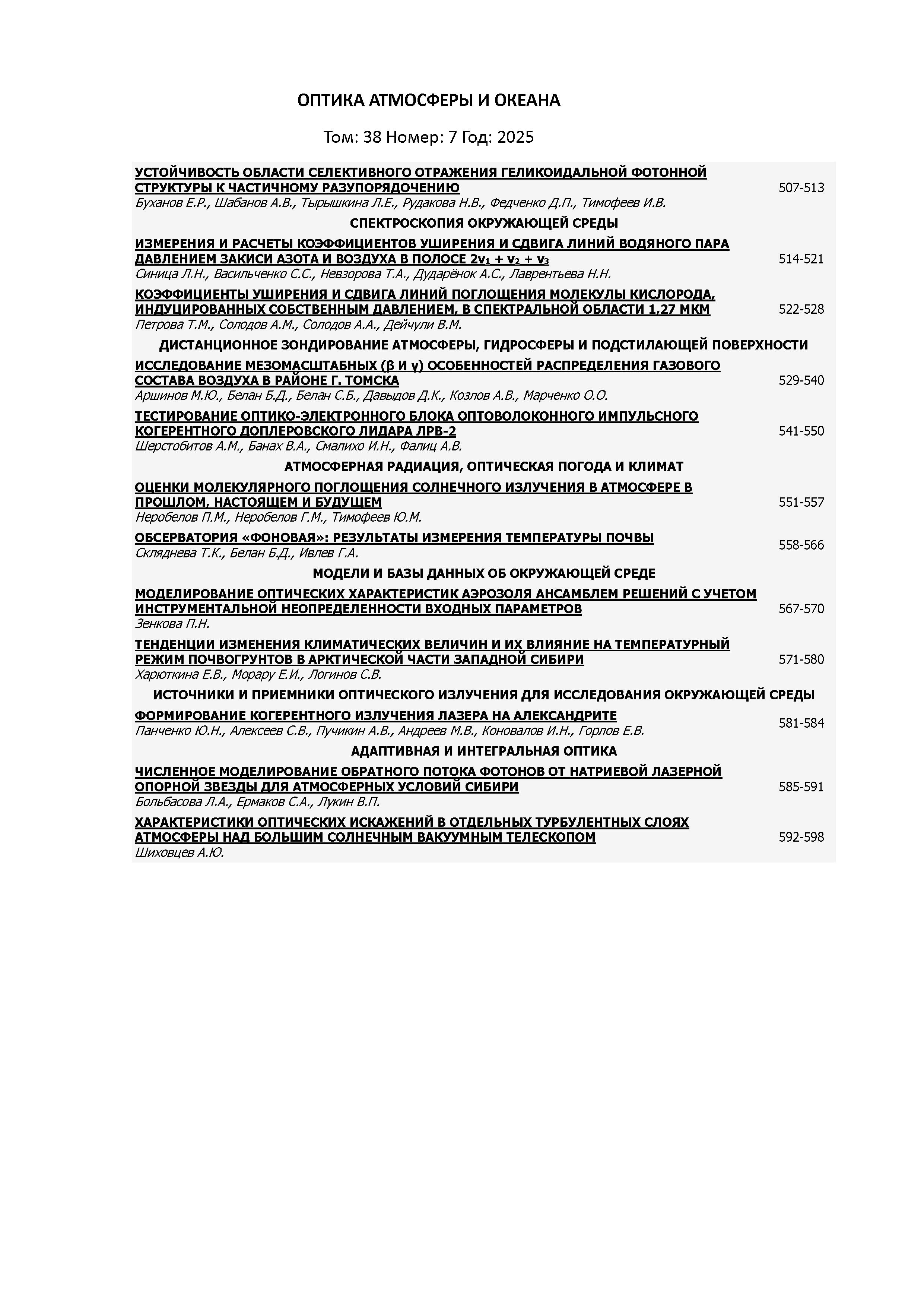 Оптика атмосферы и океана 2025 Т. 38 N 7 |