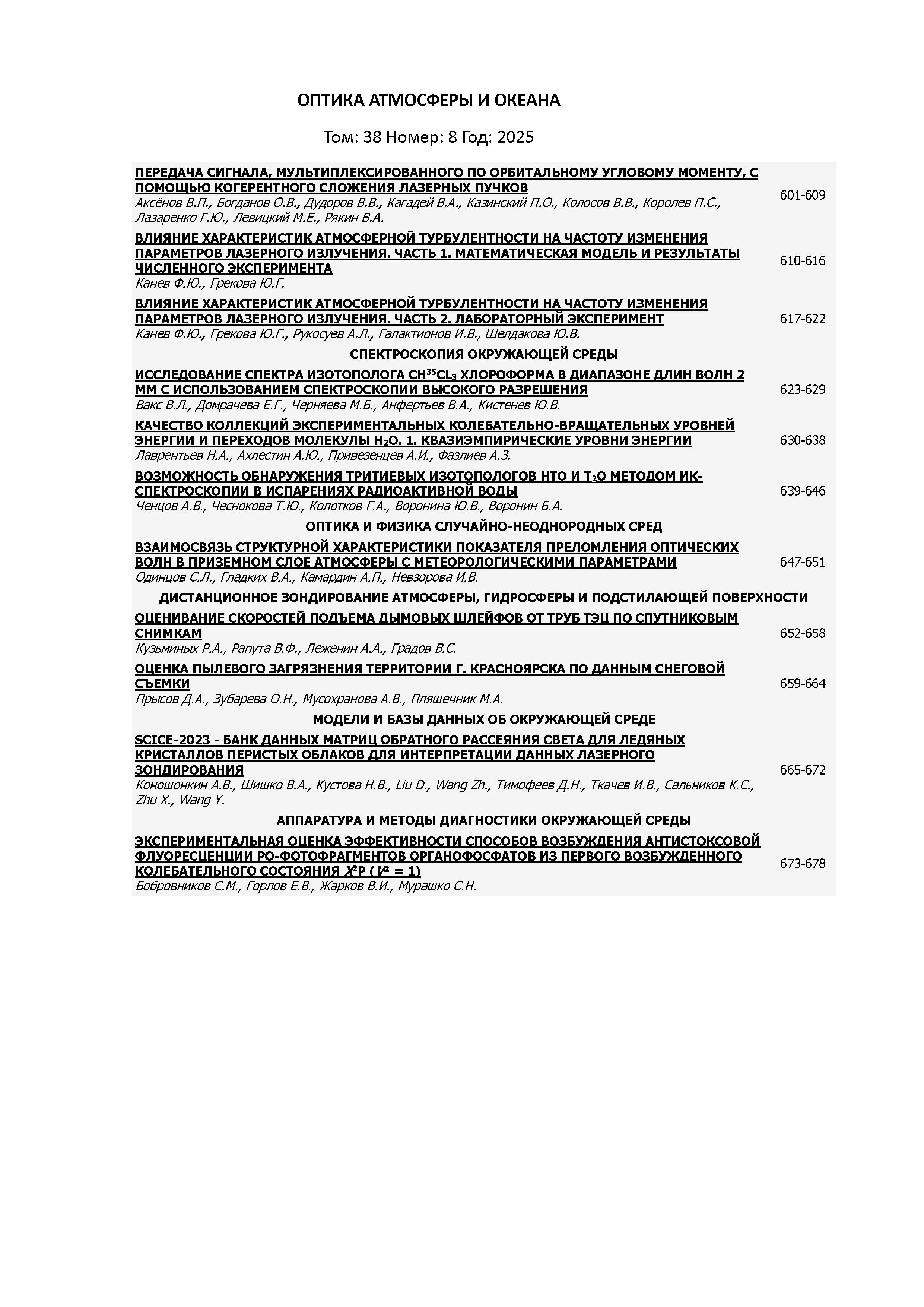 Оптика атмосферы и океана 2025 Т. 38 N 8 |