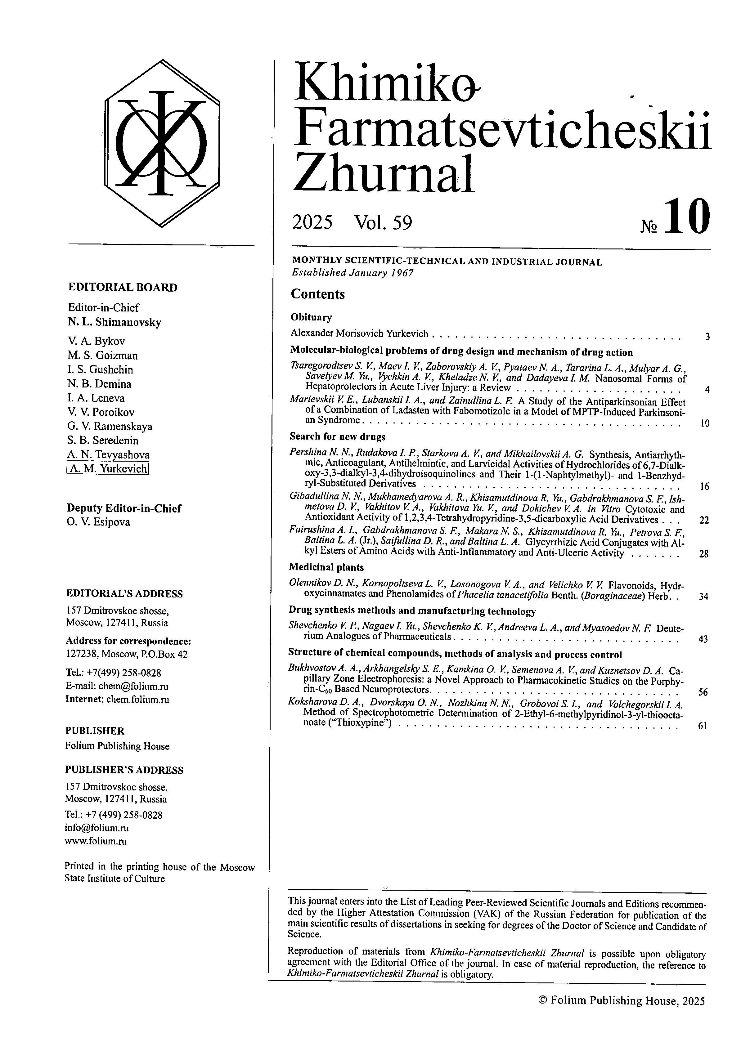 Химико-фармацевтический журнал 2025 Т. 59 № 10 |