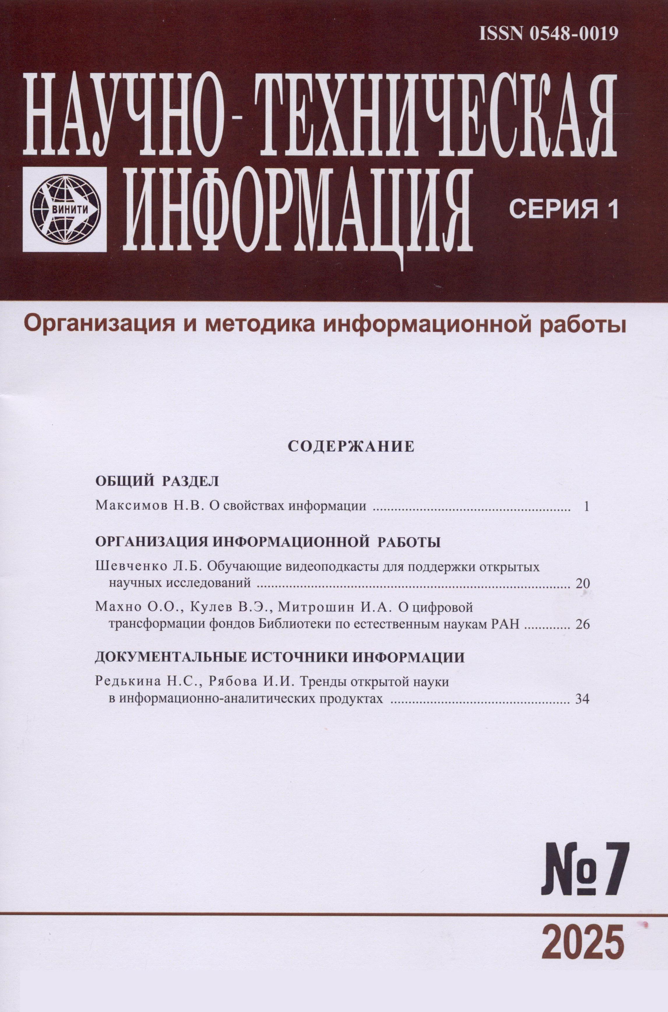 05.09.2025-16:44 Научно-техническая информация Сер. 1 Организация и методика информационной работы 2025 № 7 Научно-техническая информация Сер. 1 Организация и методика информационной работы 2025 № 7 2025 7