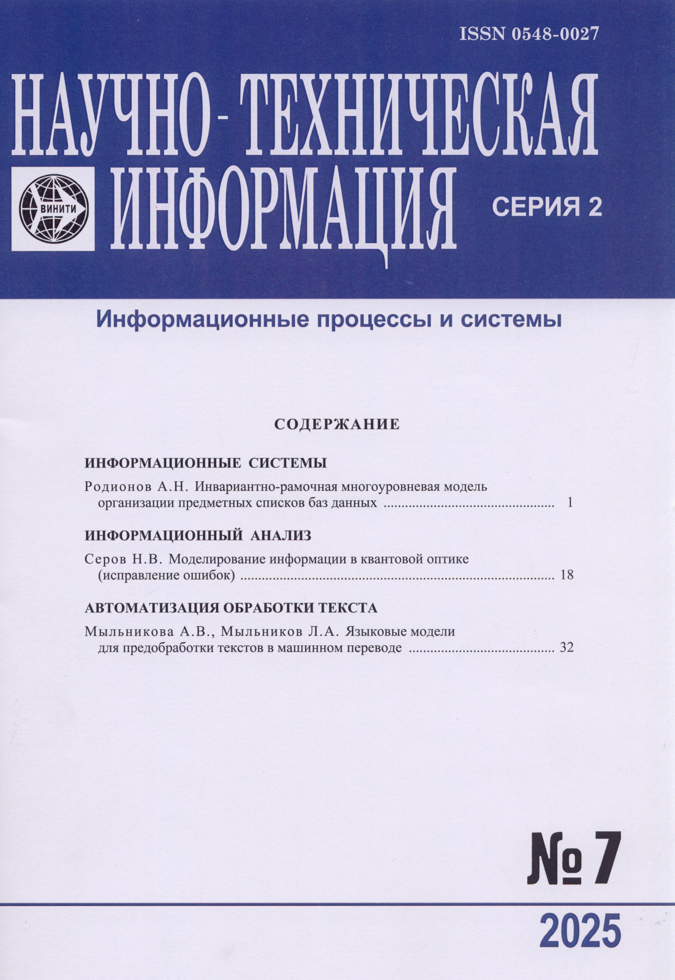 05.09.2025-16:46 Научно-техническая информация Сер. 2 Информационные процессы и системы 2025 № 7 Научно-техническая информация Сер. 2 Информационные процессы и системы 2025 № 7 2025 7