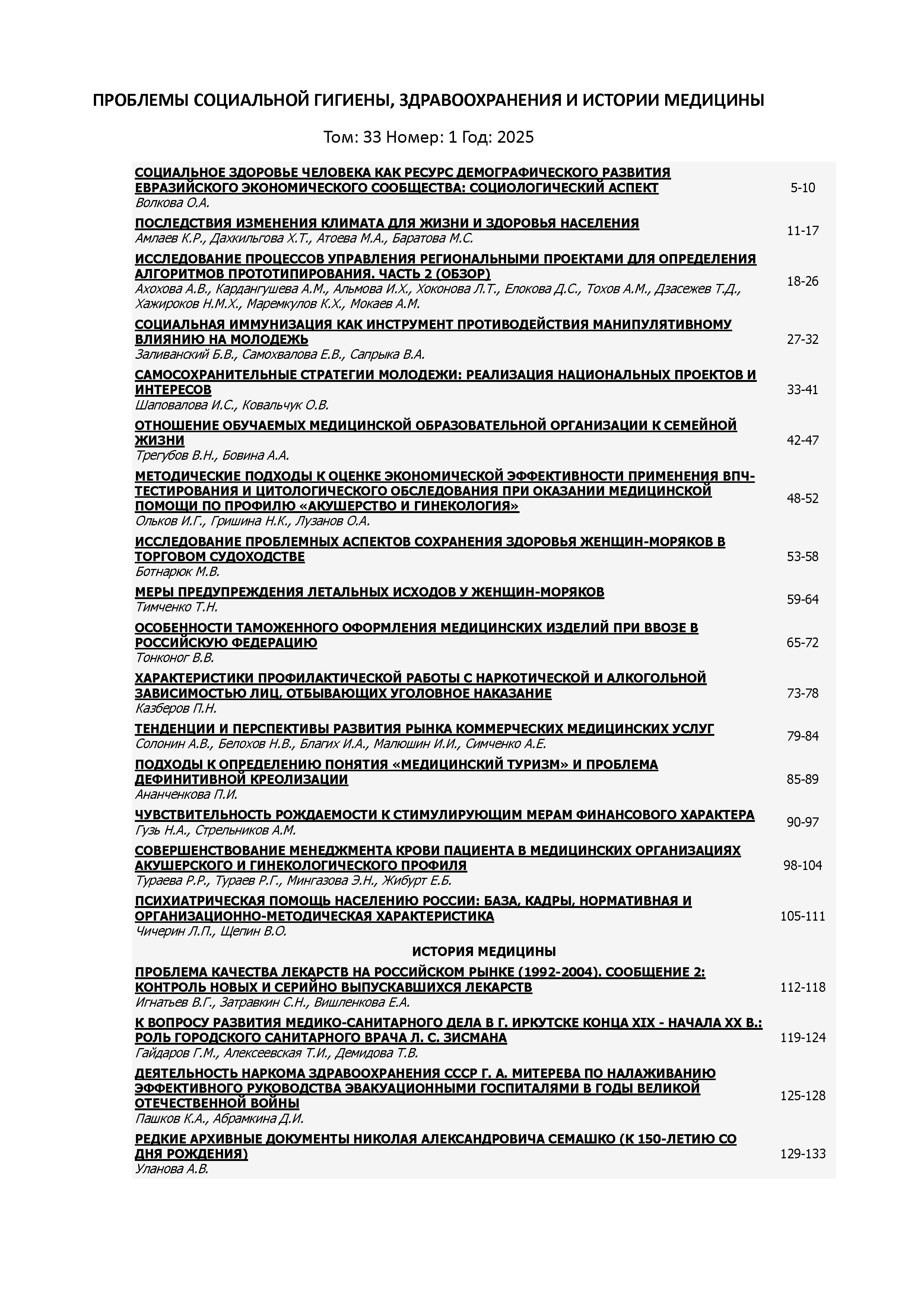 Проблемы социальной гигиены, здравоохранения и истории медицины 2025 № 1 |