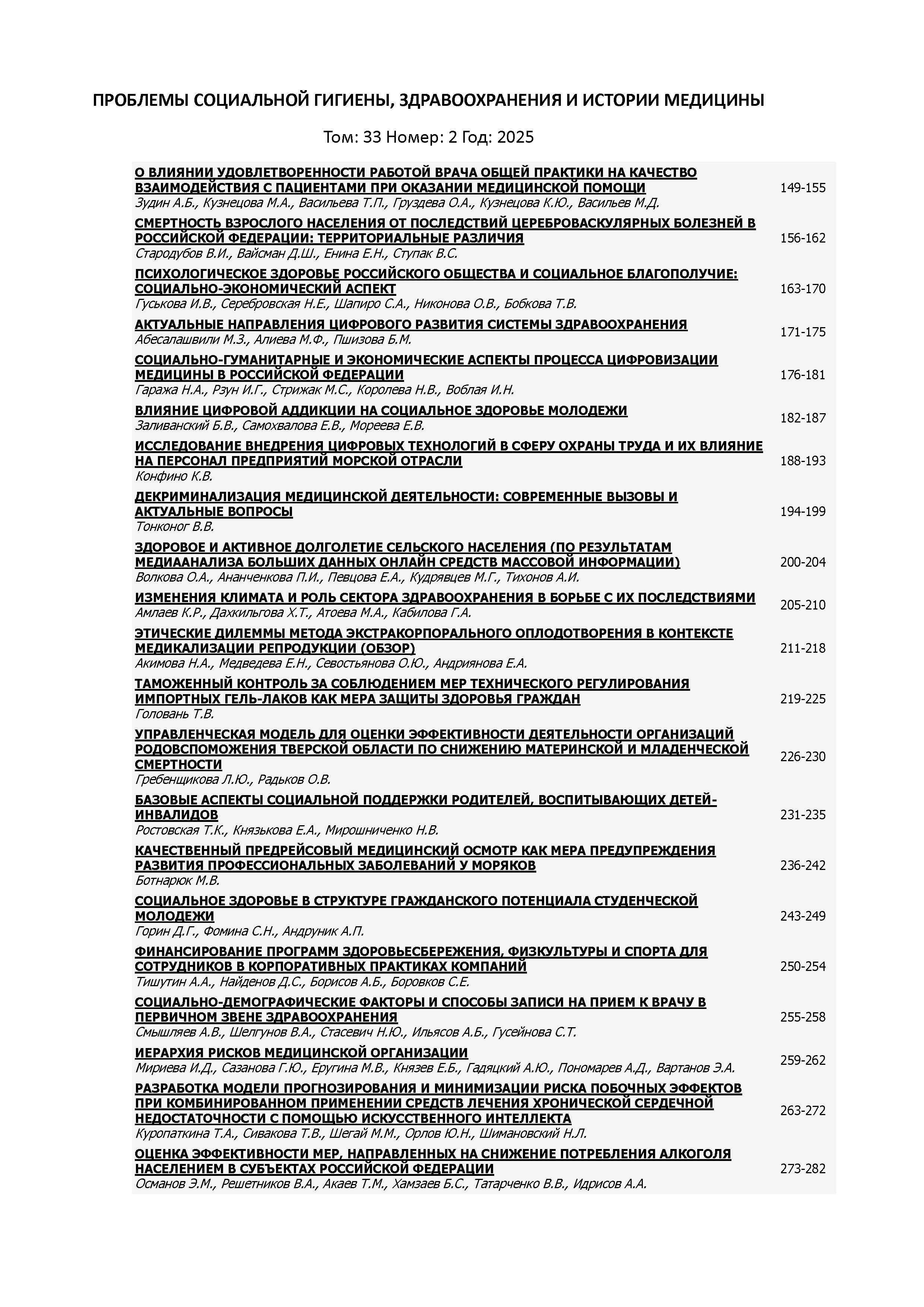 Проблемы социальной гигиены, здравоохранения и истории медицины 2025 № 3 |