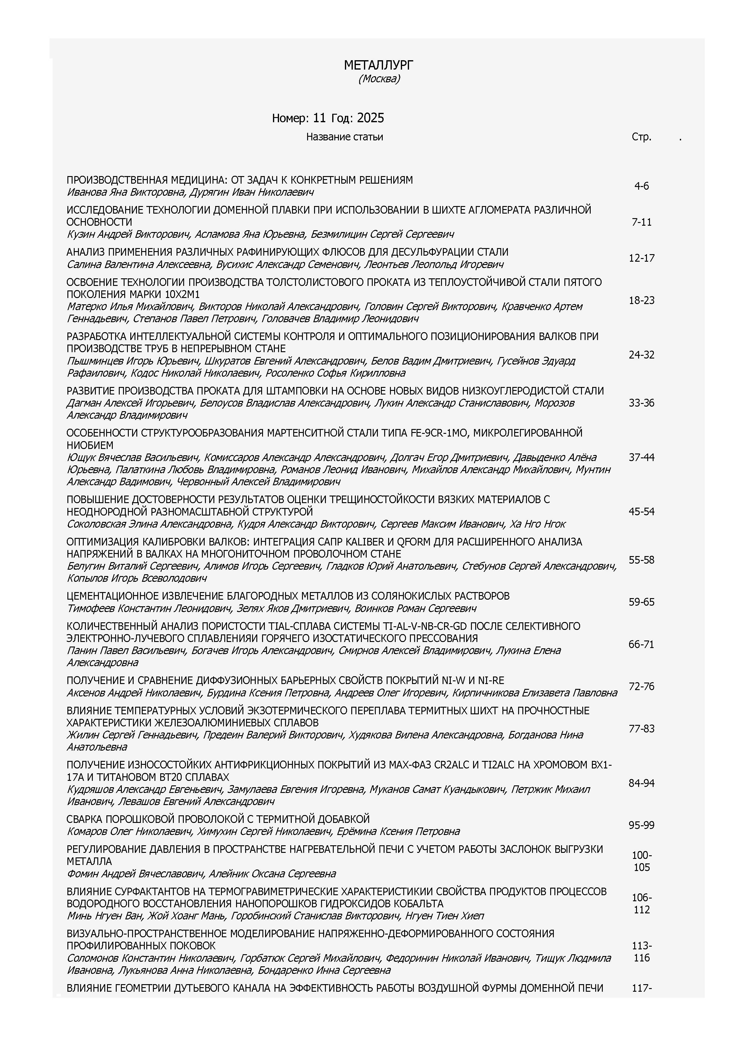 Металлург 2025 № 11 |