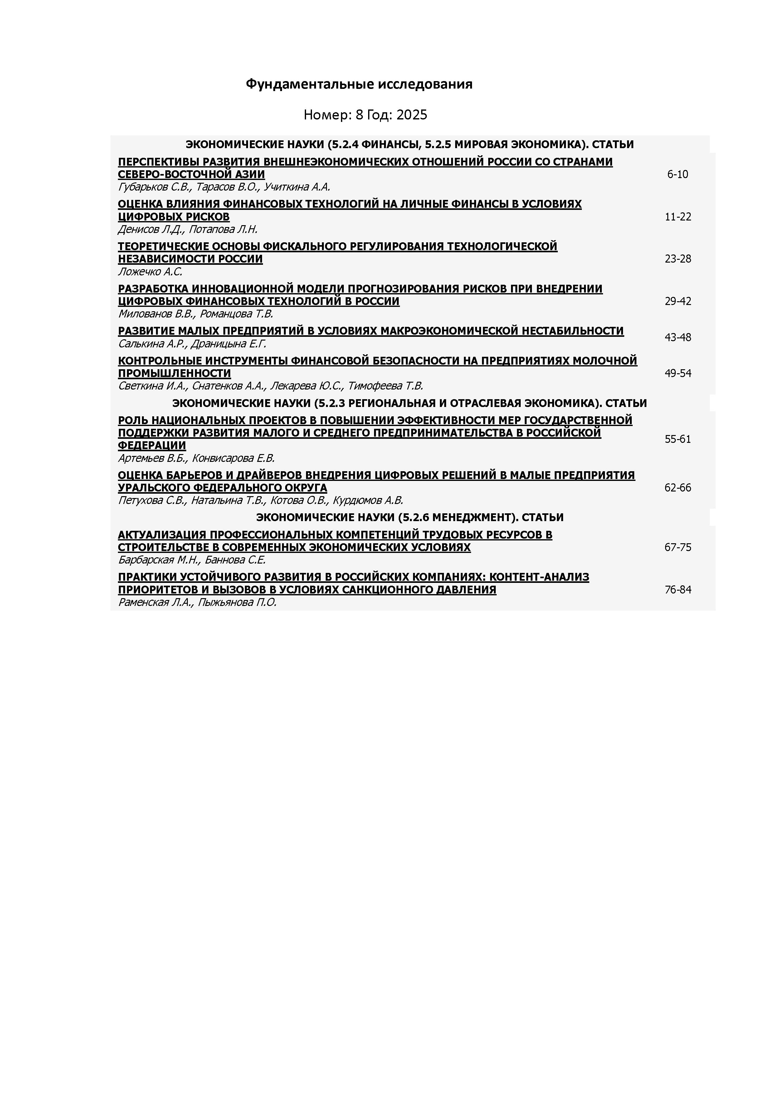 01.11.2025-10:22 Фундаментальные исследования 2025 N 8 Фундаментальные исследования 2025 N 8 2025 8