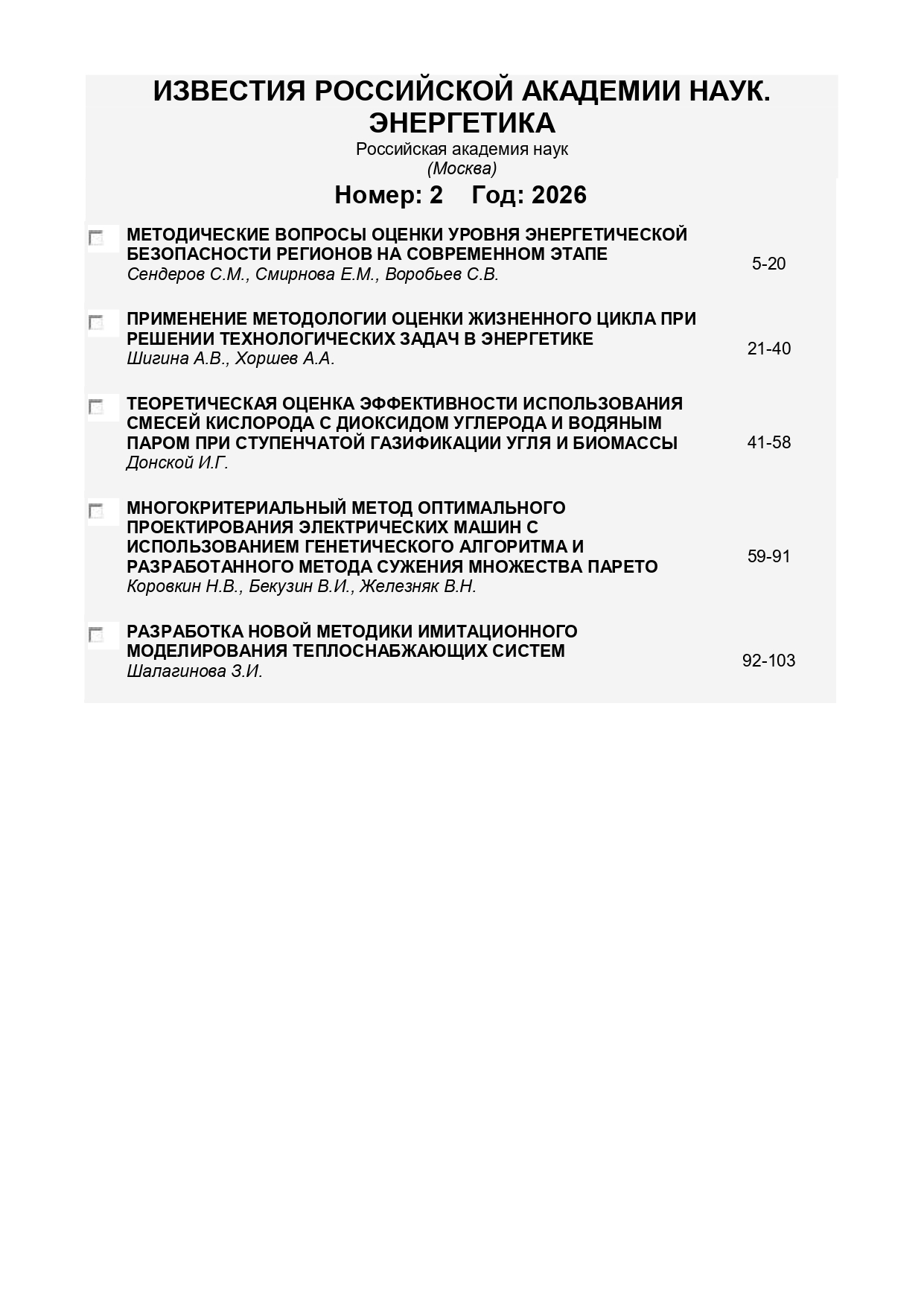 Известия РАН. Сер. Энергетика 2026 № 2 | Известия РАН. Сер. Энергетика 2026 № 2 | 2026 | 2 |