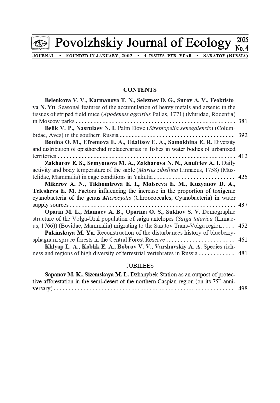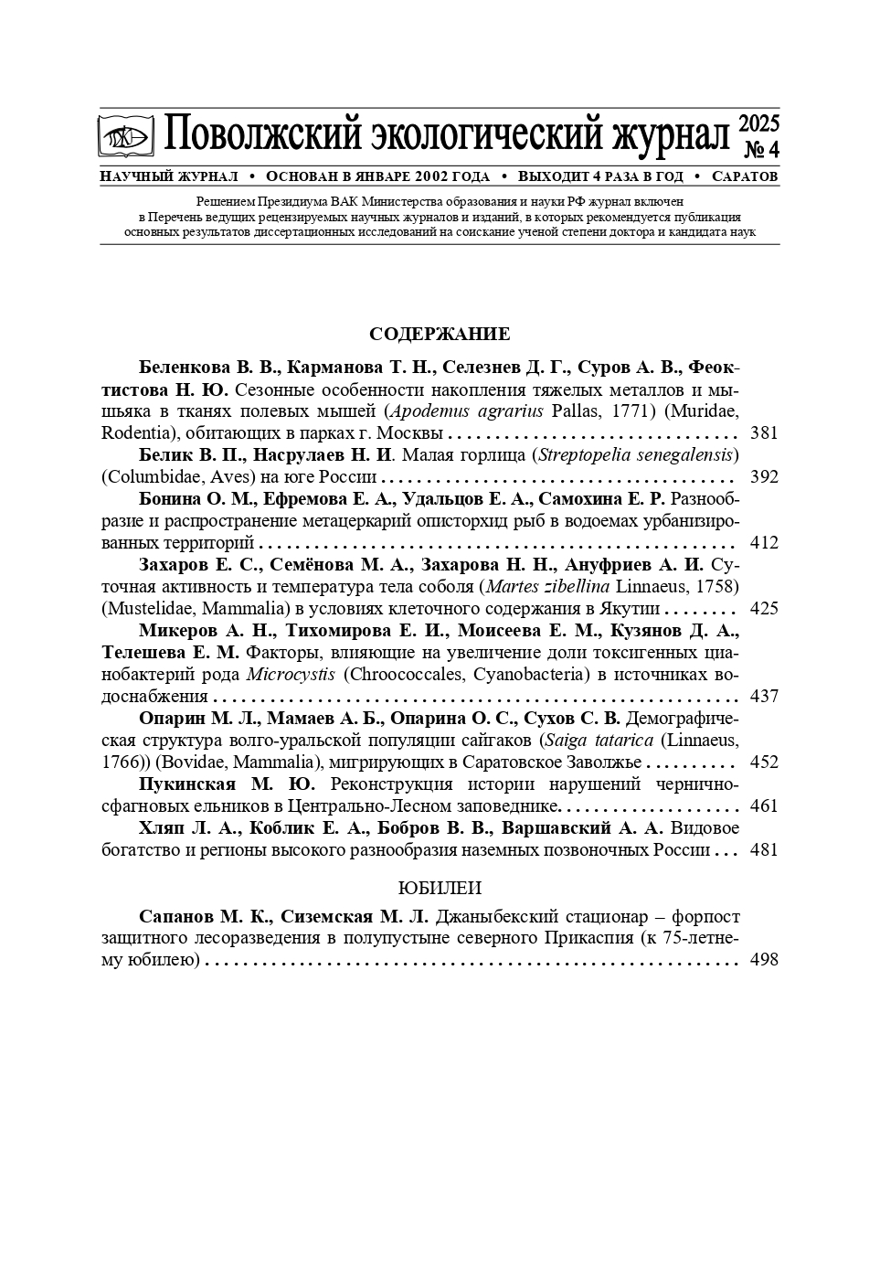 Поволжский экологический журнал 2025 № 4 |