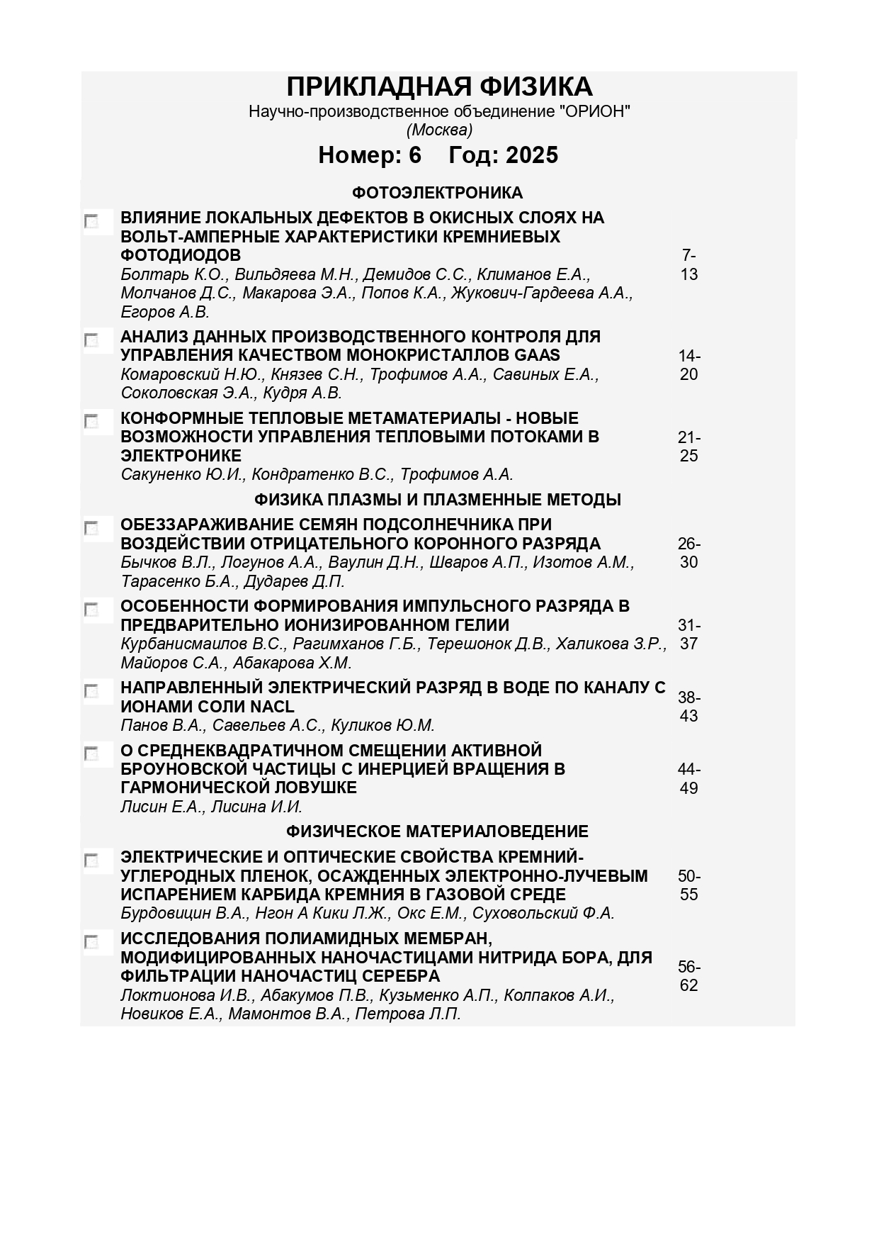 Прикладная физика 2025 № 6 | Прикладная физика 2025 № 6 | 2025 | 6 |
