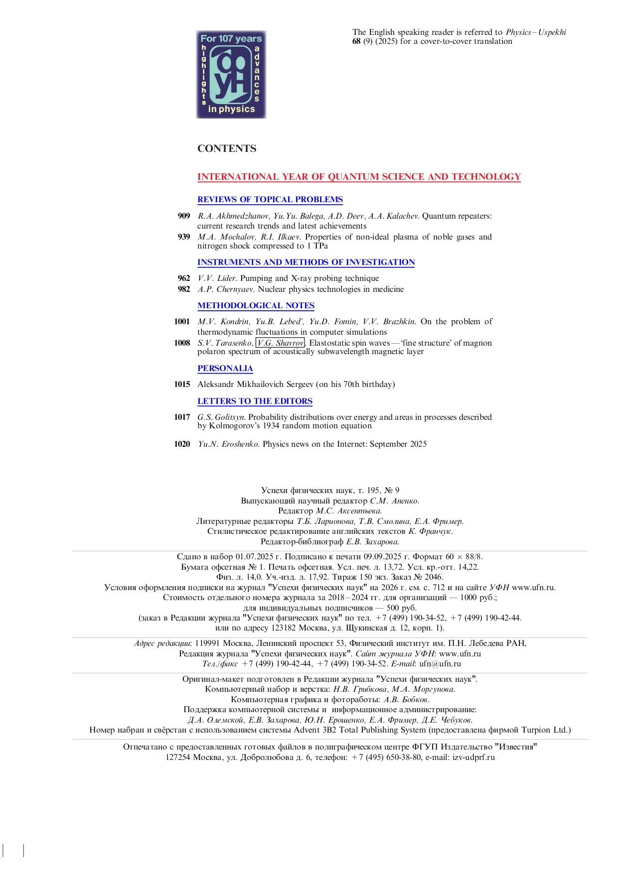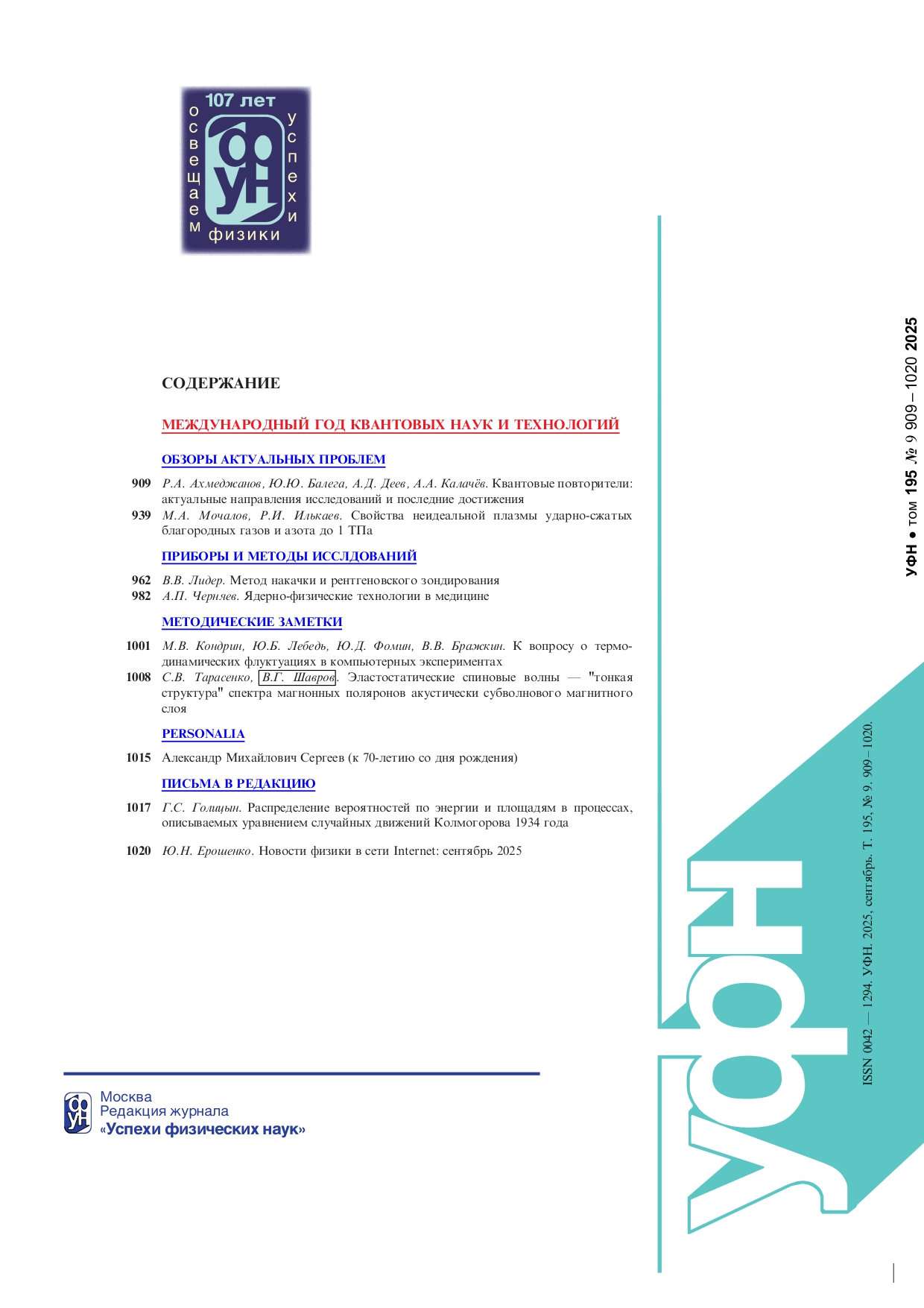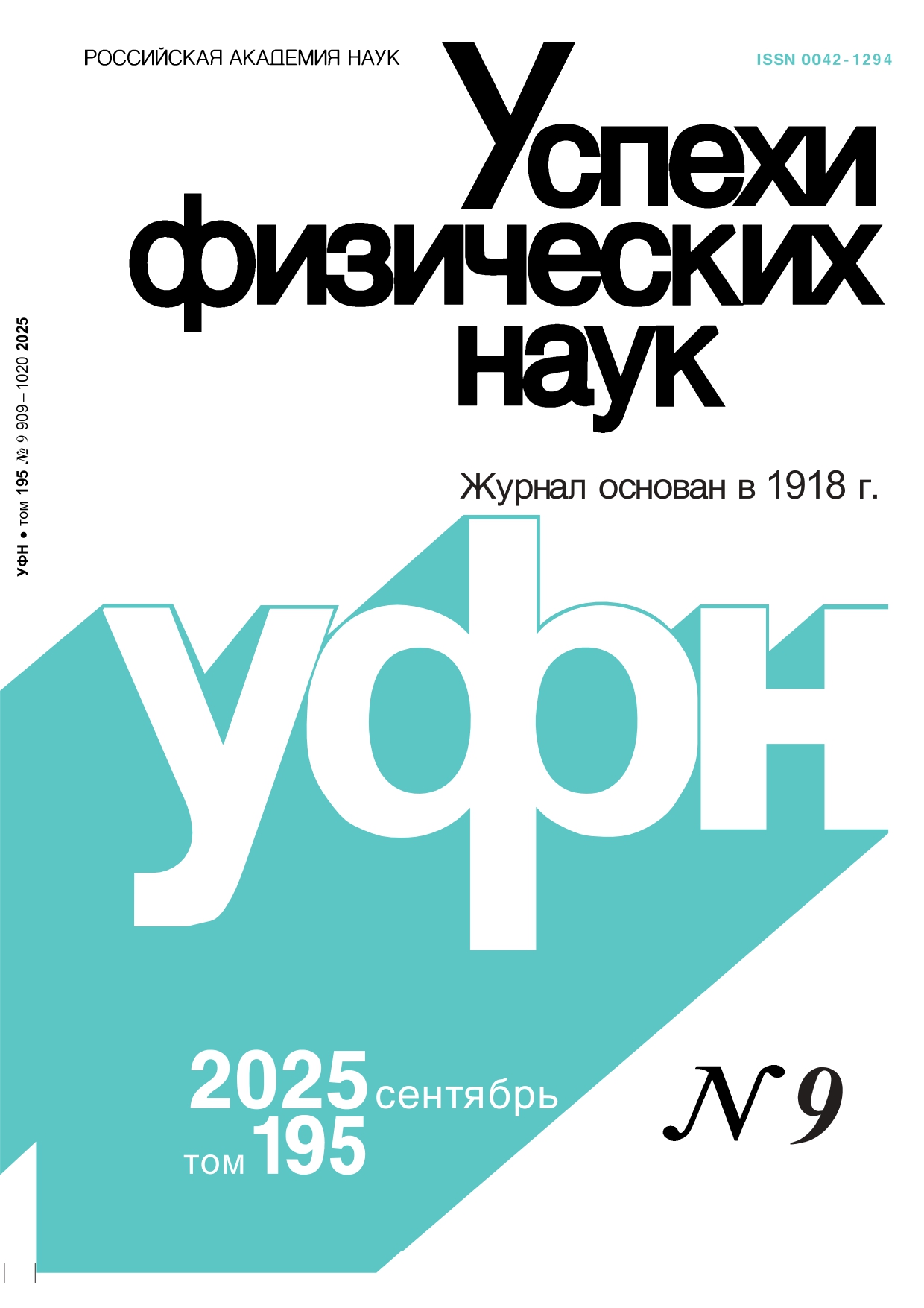 Успехи физических наук 2025 Т.195 № 9 | Успехи физических наук 2025 Т.195 № 9 | 2025 | 9 |