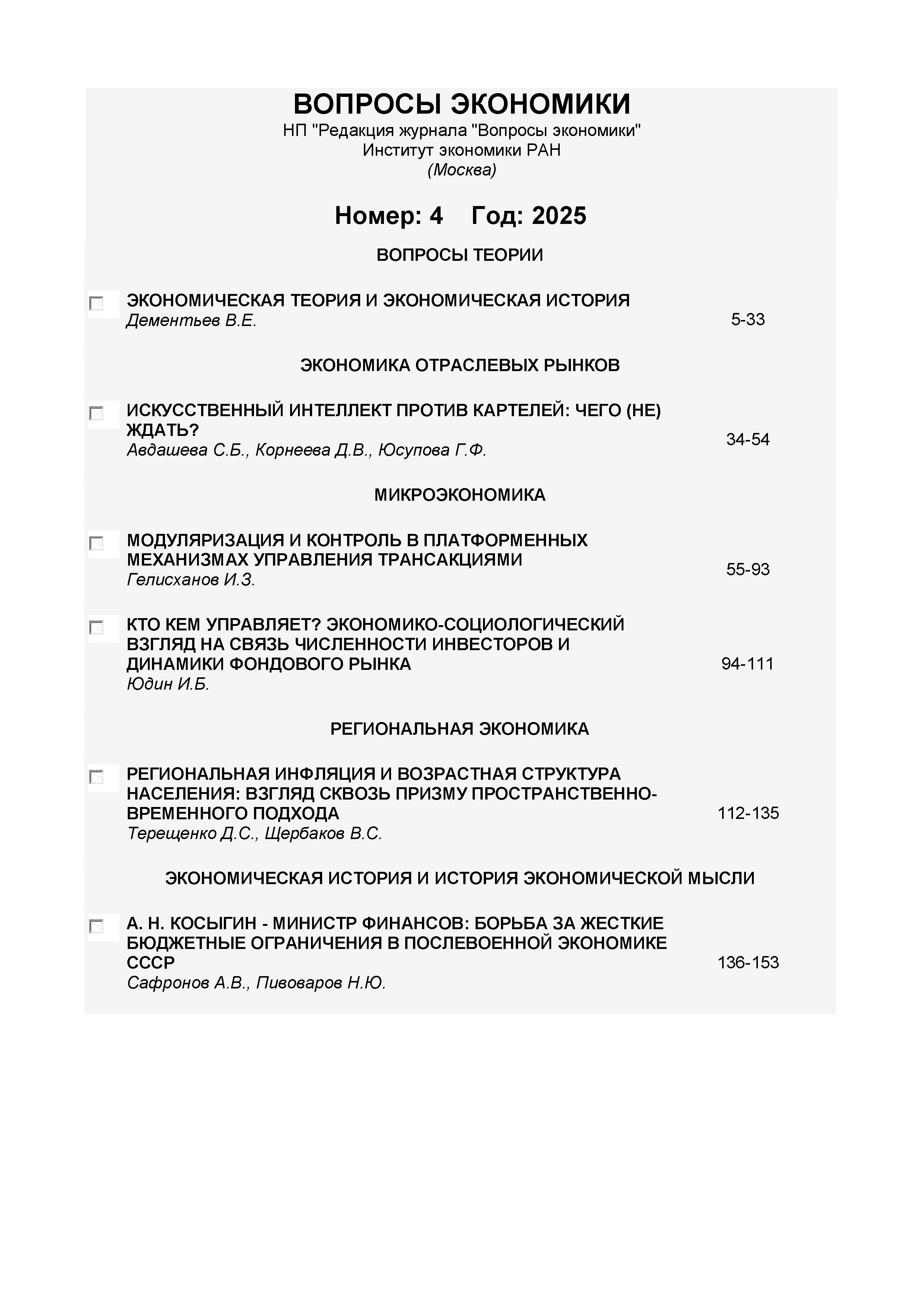 Вопросы экономики 2025 № 4 | Вопросы экономики 2025 № 4 | 2025 | 4 |