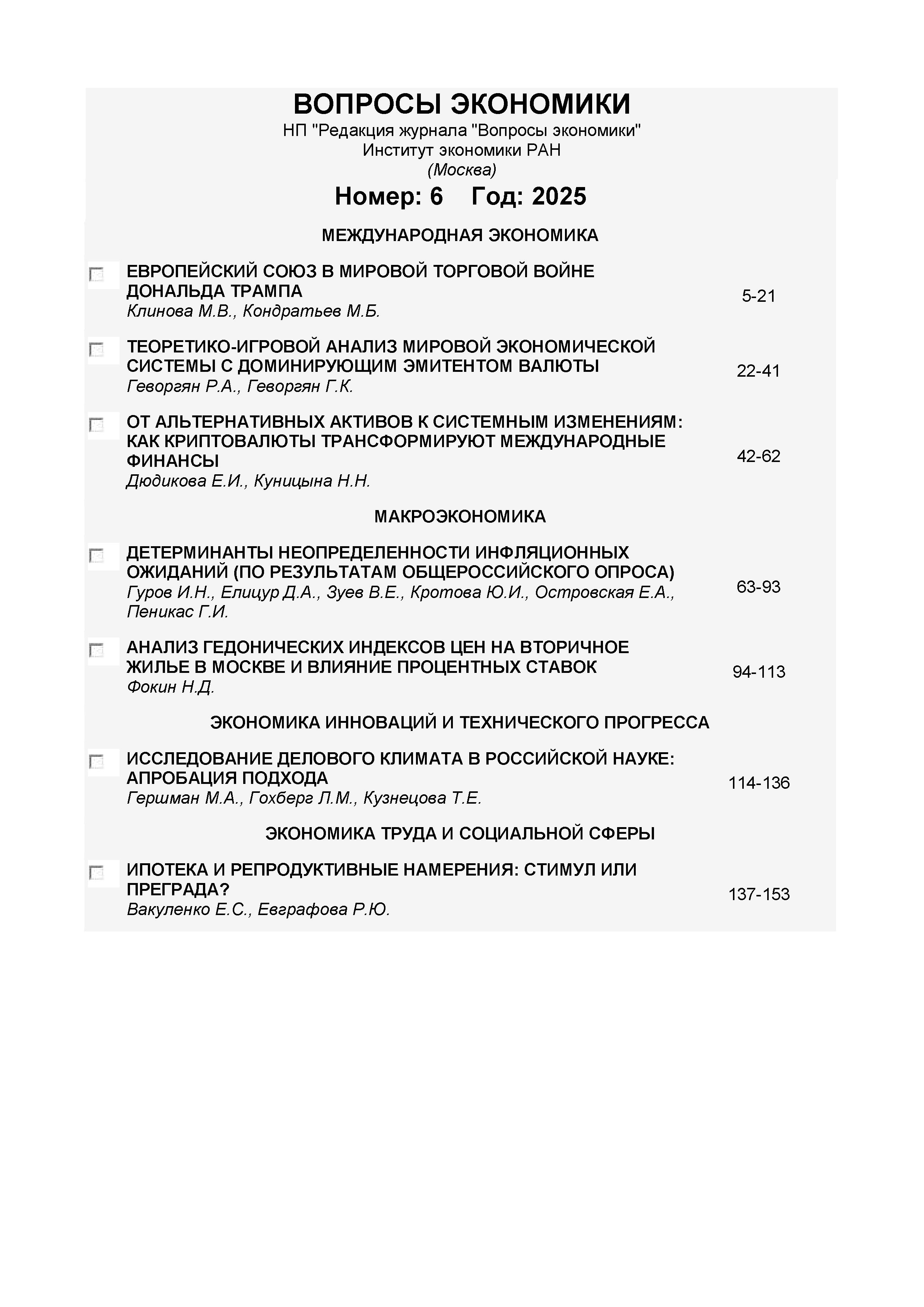 Вопросы экономики 2025 № 6 | Вопросы экономики 2025 № 6 | 2025 | 6 |