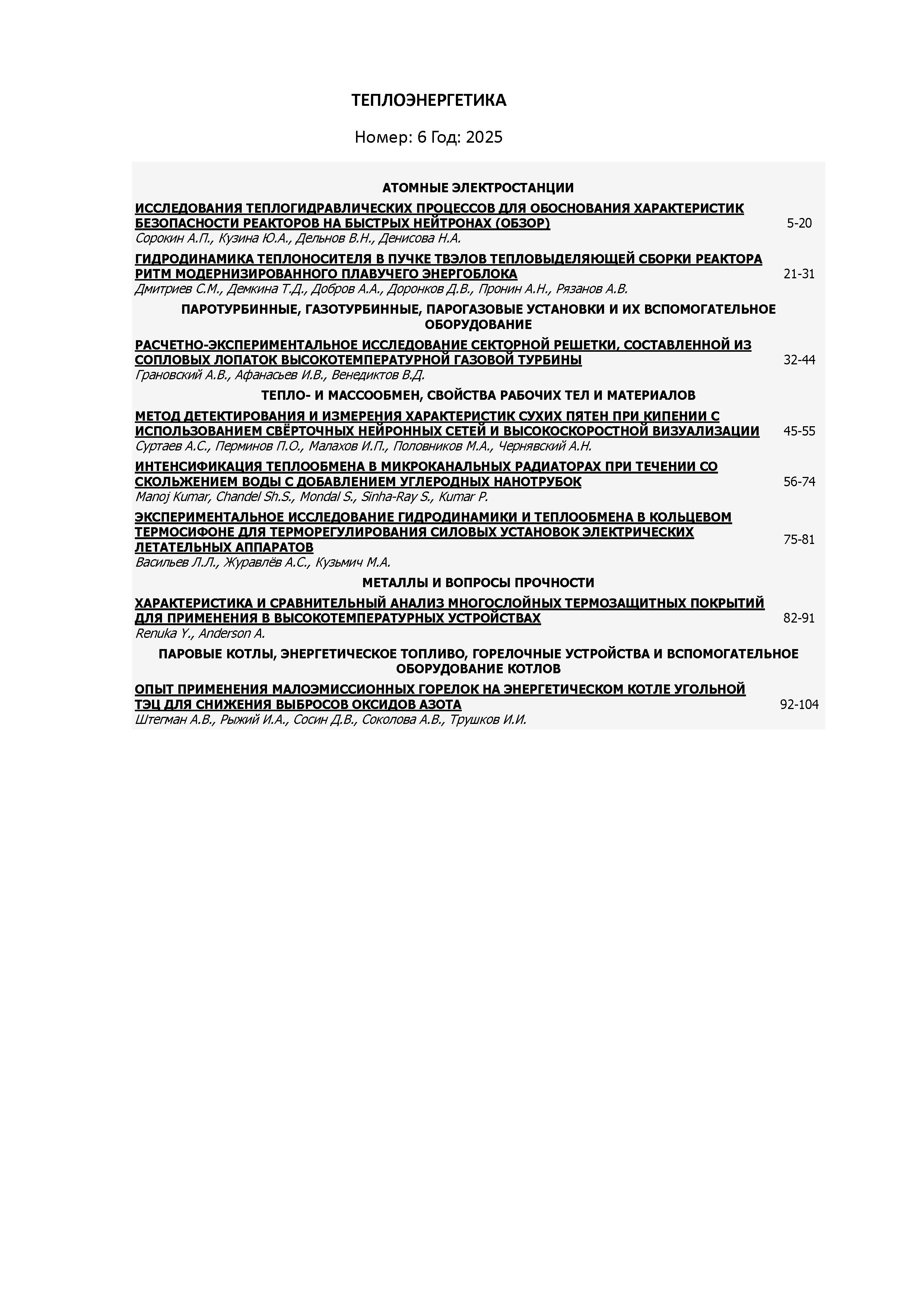 Теплоэнергетика 2025 №6 | Теплоэнергетика 2025 №6 | 2025 | 6 |