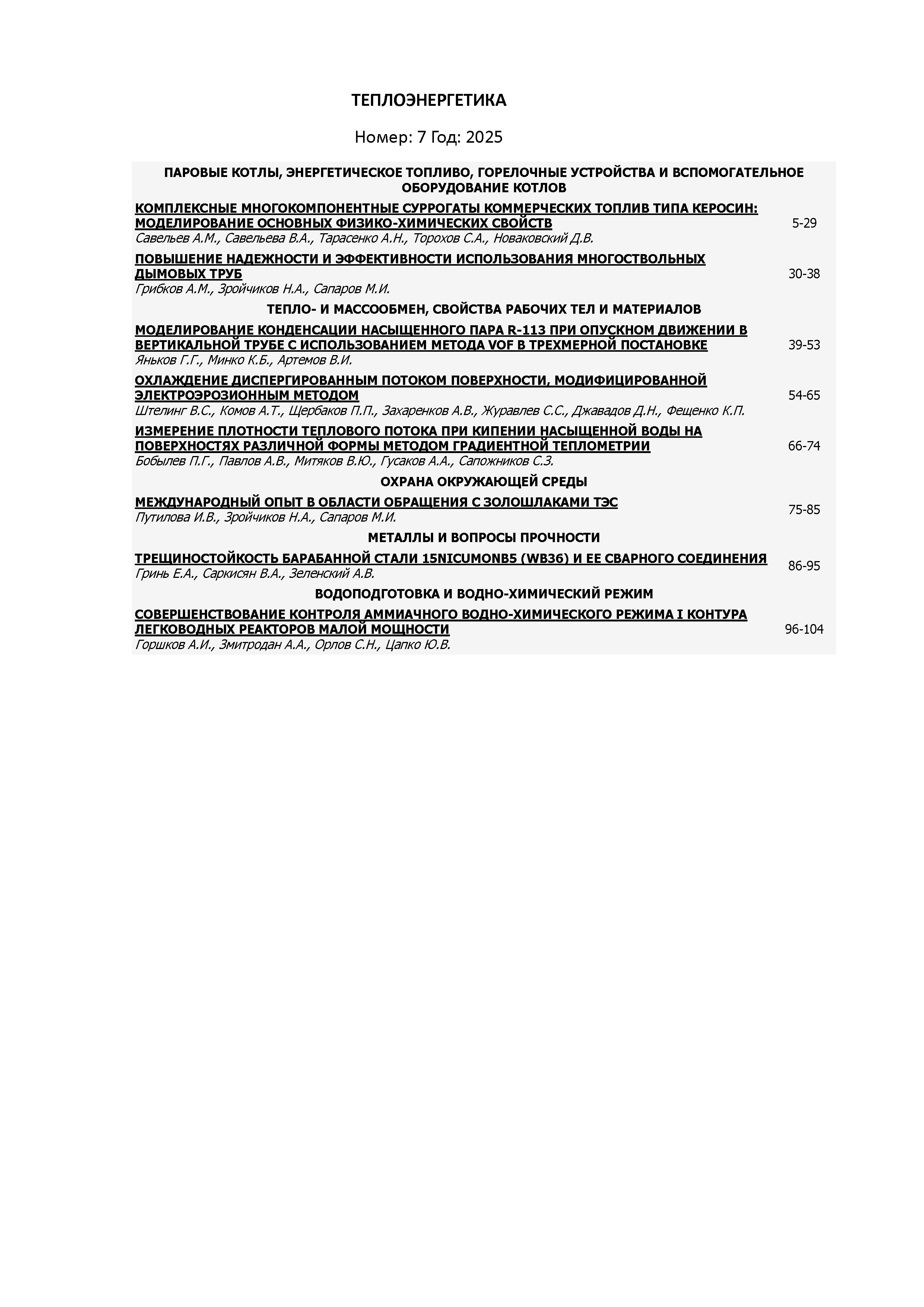 Теплоэнергетика 2025 №7 | Теплоэнергетика 2025 №7 | 2025 | 7 |