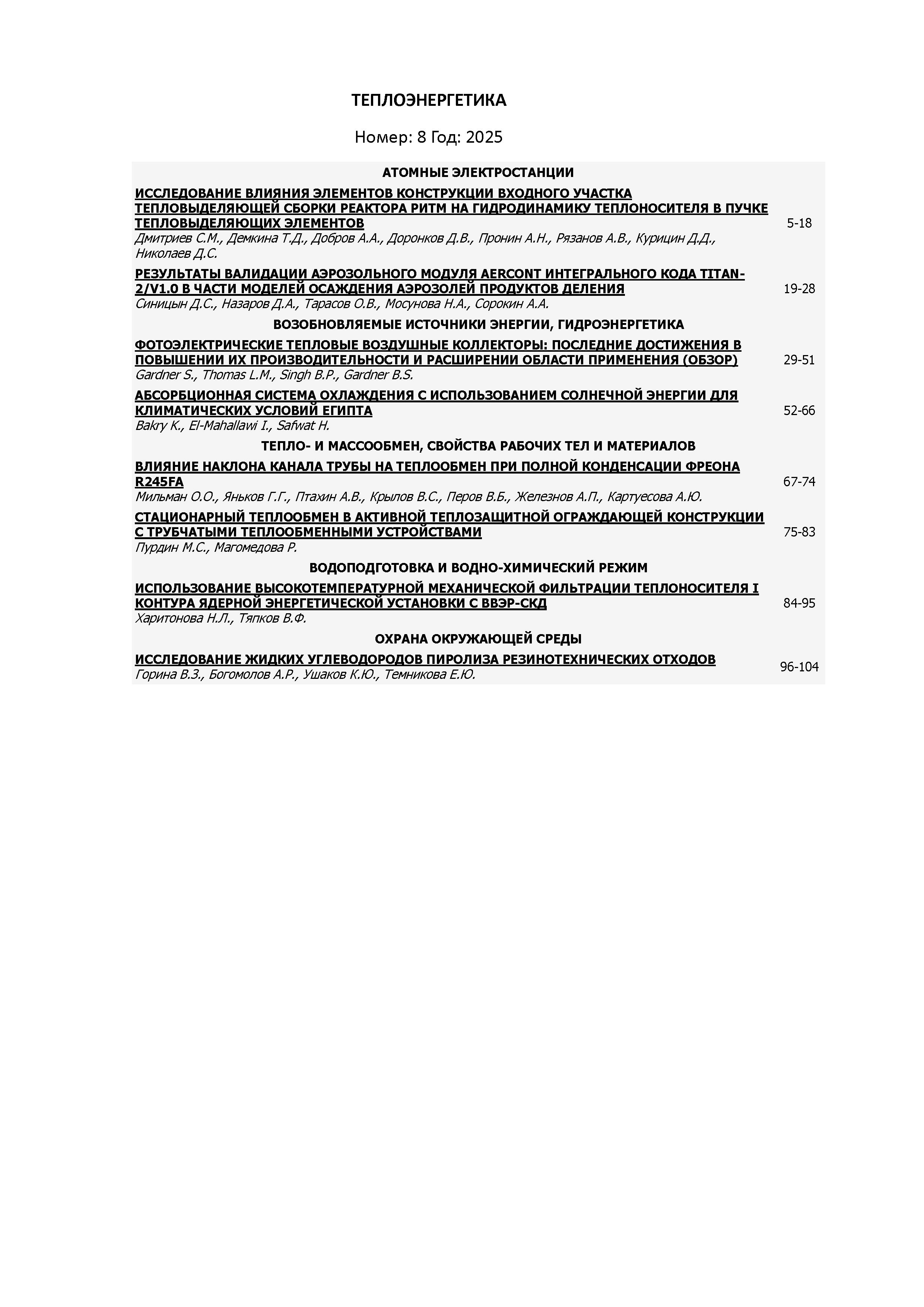 Теплоэнергетика 2025 №8 | Теплоэнергетика 2025 №8 | 2025 | 8 |