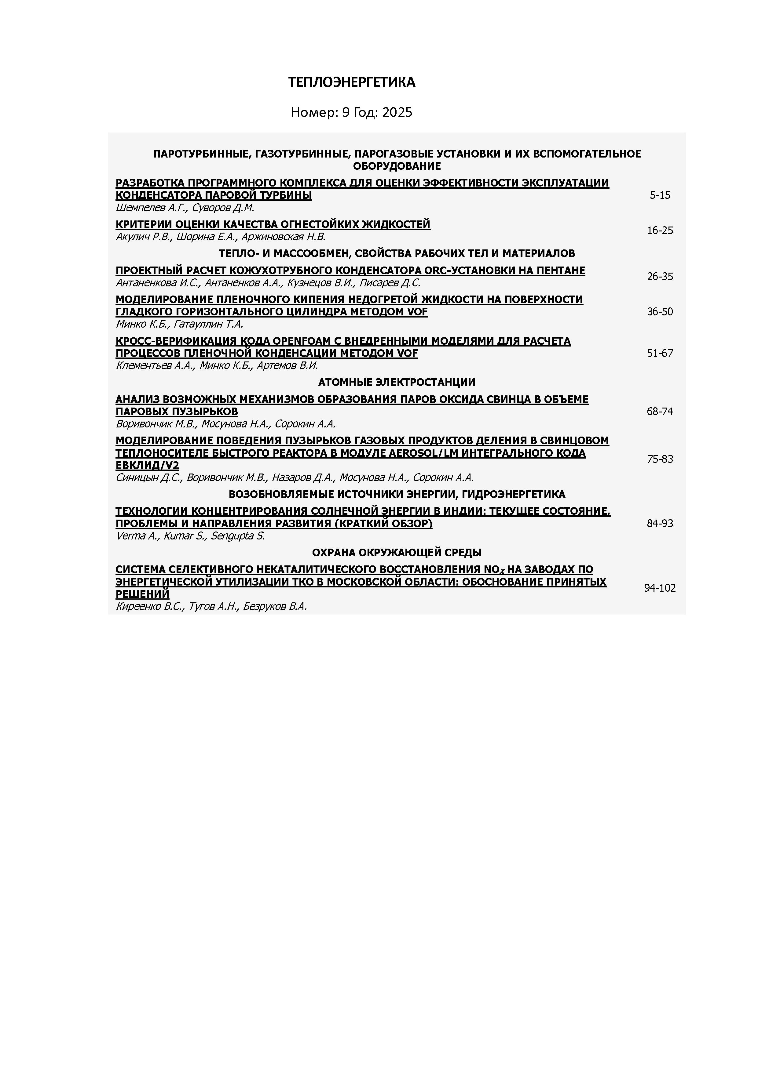 Теплоэнергетика 2025 №9 | Теплоэнергетика 2025 №9 | 2025 | 9 |